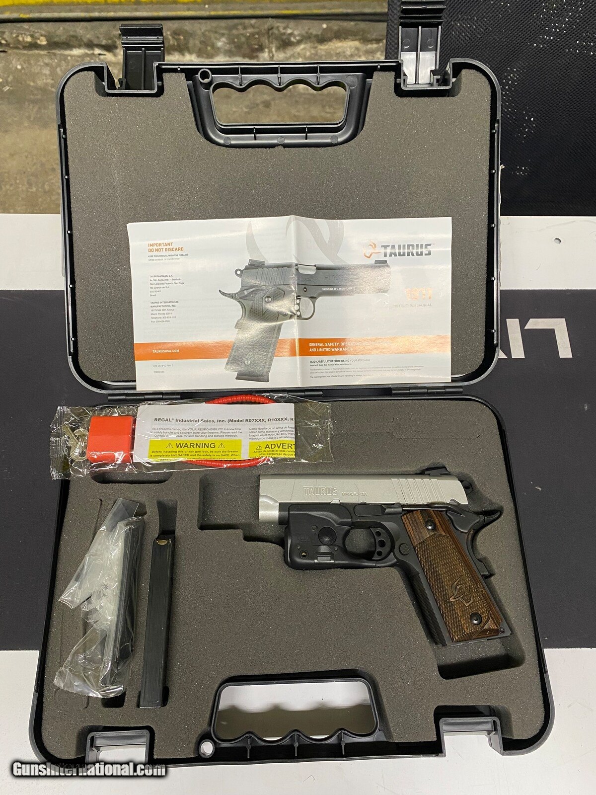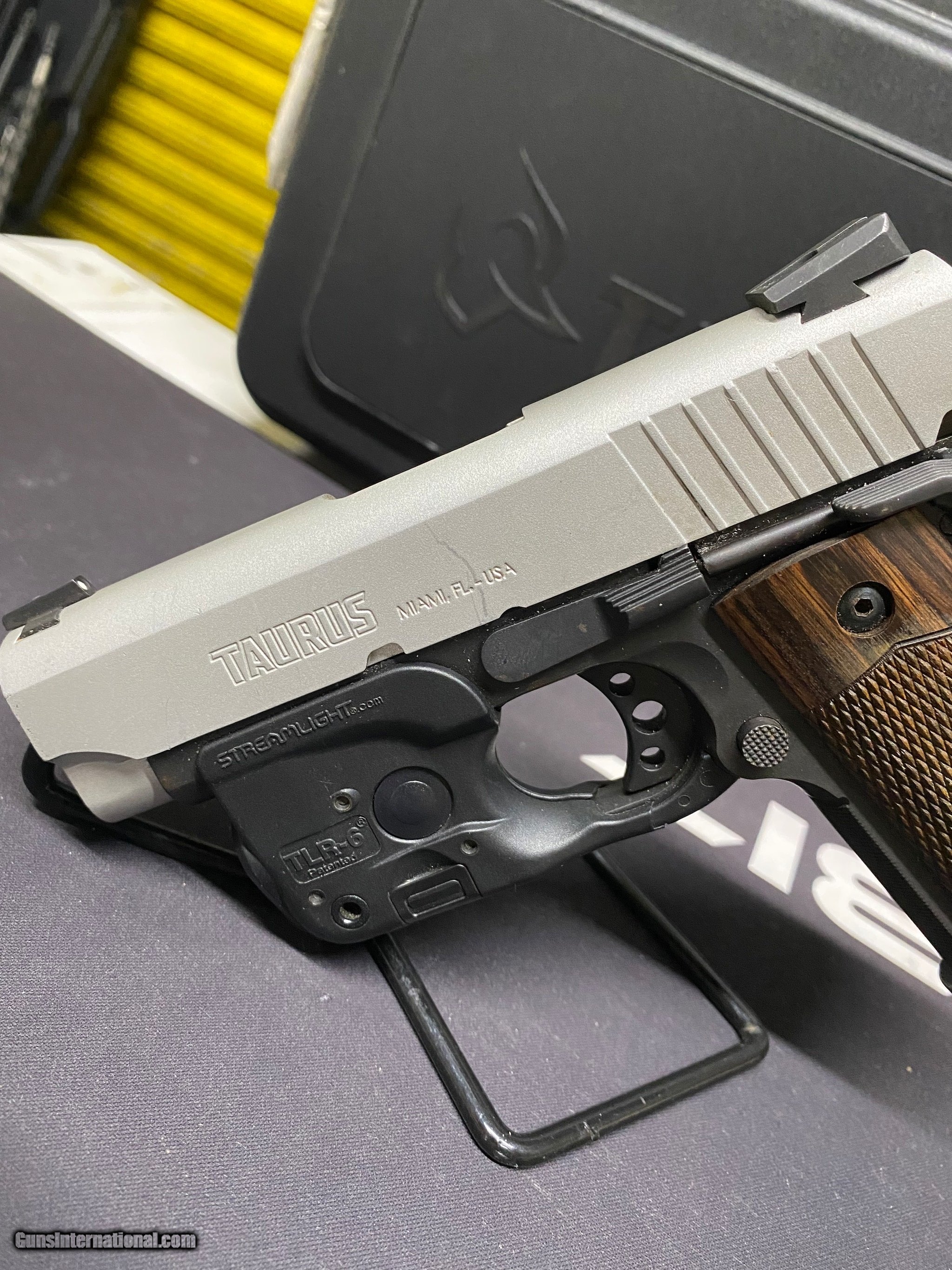 Description: Guns Listing ID: 702486 *** PRE-OWNED / IN GOOD CONDITION *** . \" TAURUS 1911 .45ACP OFFICER SEMI-AUTO PISTOL \" \"WITH HARD CASE, ONE MAGAZINE AND STREAMLIGHT TLR-6 LIGHT AND RED LASER \" . \" SEE ALL PHOTOS \" . \"ALL FIREARMS ARE INSPECTED BY A CERTIFIED GUNS-SMITH & NRA INSTRUCTOR \" (ITEM CODE:G-I-1966) SOLD Manufacturer: TAURUS Model: 1911 Officer 45 Caliber Info: .45 ACP Condition: Used - Non-Certified Barrels: 3 BARREL Finish: STEEL / ALUMINUM |