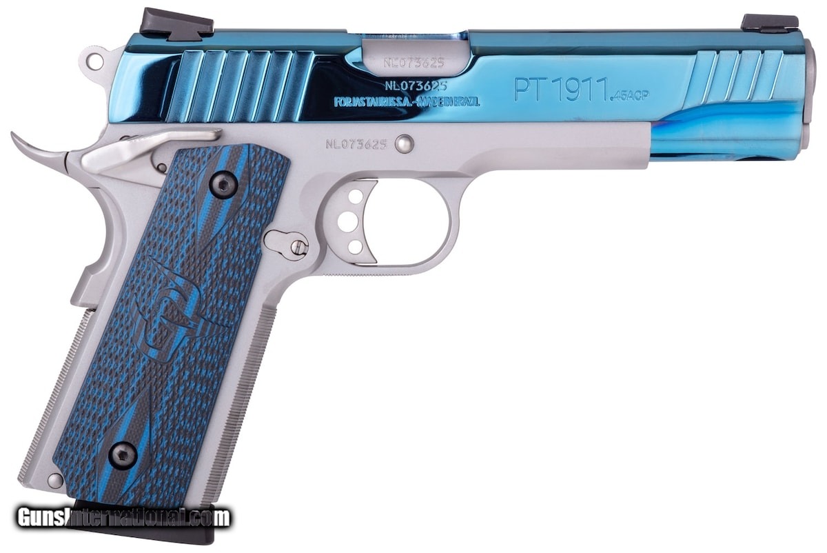 Description: Guns Listing ID: 482444 The Taurus 1911 .45 ACP is high polish blue PVD with custom VZ grips. With Novak Drift Adjustable front and rear sights. Trigger pull is 4.4 lbs. There is an 8 round magazine included. SOLD Manufacturer: TAURUS Model: 1911 Caliber Info: .45 ACP Condition: new Barrels: 5" barrel Finish: BLUE/STAINLESS |