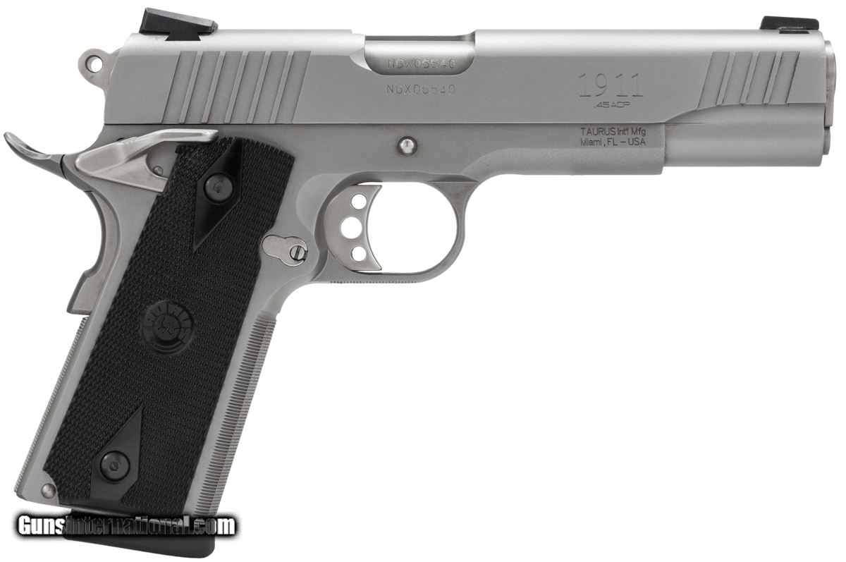 Description: Guns Listing ID: 378 Taurus machines every part of its 1911 with the frames barrels and slides all hammer forged from ordnance grade steel. Available in a variety of calibers each edition of the Taurus 1911 comes with a ventilated and lighter trigger and black grips. The beavertail grip safety is an excellent feature for users seeking a self-defense or competition firearm. Details Destined to become the standard that all 1911 pistols are compared against the Taurus 1911 offers you the most accurate and feature-laden model on the market today. Starting with our own hammer-forged -not cast-ordnance grade steel frames slides and barrels we machine each and every part to tolerance levels that surpass even todays industry standards. Our skilled pistol smiths hand-fit and tune each gun with the 19 standard features seen below using quality parts that are built 100 in our state-of-the-art factory. Then they mark the slide barrel and frame with matching serial numbers. Available in the powerful .45 ACP this aggressive rock-solid firearm is ready to go right out of the box. The Taurus 1911 is an unbeatable gun that is also an unbeatable value. - Finish Stainless Steel - Caliber 45 Auto - Grips Checkered Black - Capacity 8 1 - Weight 38 oz - Rate of Twist 116 - Barrel Length 5 - Height 5.45 - Frame Large - Width 1-12 - Action SA - Front Sight Heinie - Length 8 12 - Grooves 6 - Safety Manual Safety Manual Safety - Trigger Type Smooth - Grooves Turn Left SOLD Manufacturer: TAURUS Model: 1911 Caliber Info: .45 ACP Condition: new Barrels: 5 barrel Finish: STAINLESS |