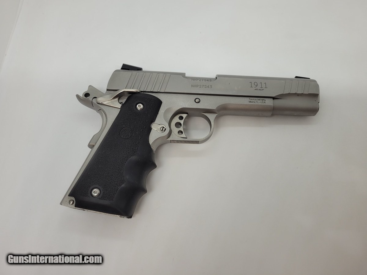 Description: Guns Listing ID: 805998 For sale is a Taurus 1911. Chambered in 45acp this pistol was made in Brazil and features a skelenitized trigger, combat hammer, extended beavertail and ambidextrous safety. Slide catch, fire control group, magazine catch are all fully operational. The slide does show some holster wear at the leading edge of the slide, bore is shiny with good contrast between lans and grooves. SOLD Manufacturer: TAURUS Model: 1911 Caliber Info: .45 ACP Condition: Used - Non-Certified Barrels: 5 BARREL Finish: STAINLESS |