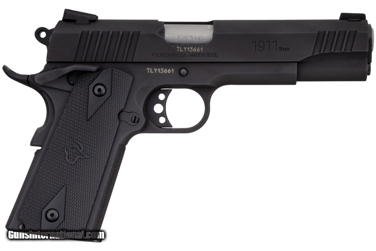 Description: Guns Listing ID: 25955 Destined to become the standard that all 1911 pistols are compared to, the Taurus 1911 offers you the most accurate and feature-laden model on the market today. It features hammer-forged-not cast-ordnance-grade steel frame, slide and barrel. The 1911 also utilizes Novak drift adjustable sights and a firing pin/grip/manual safeties. SOLD Manufacturer: TAURUS Model: 1911 Caliber Info: 9MM LUGER (9X19 PARA) Condition: new Barrels: 5 BARREL |