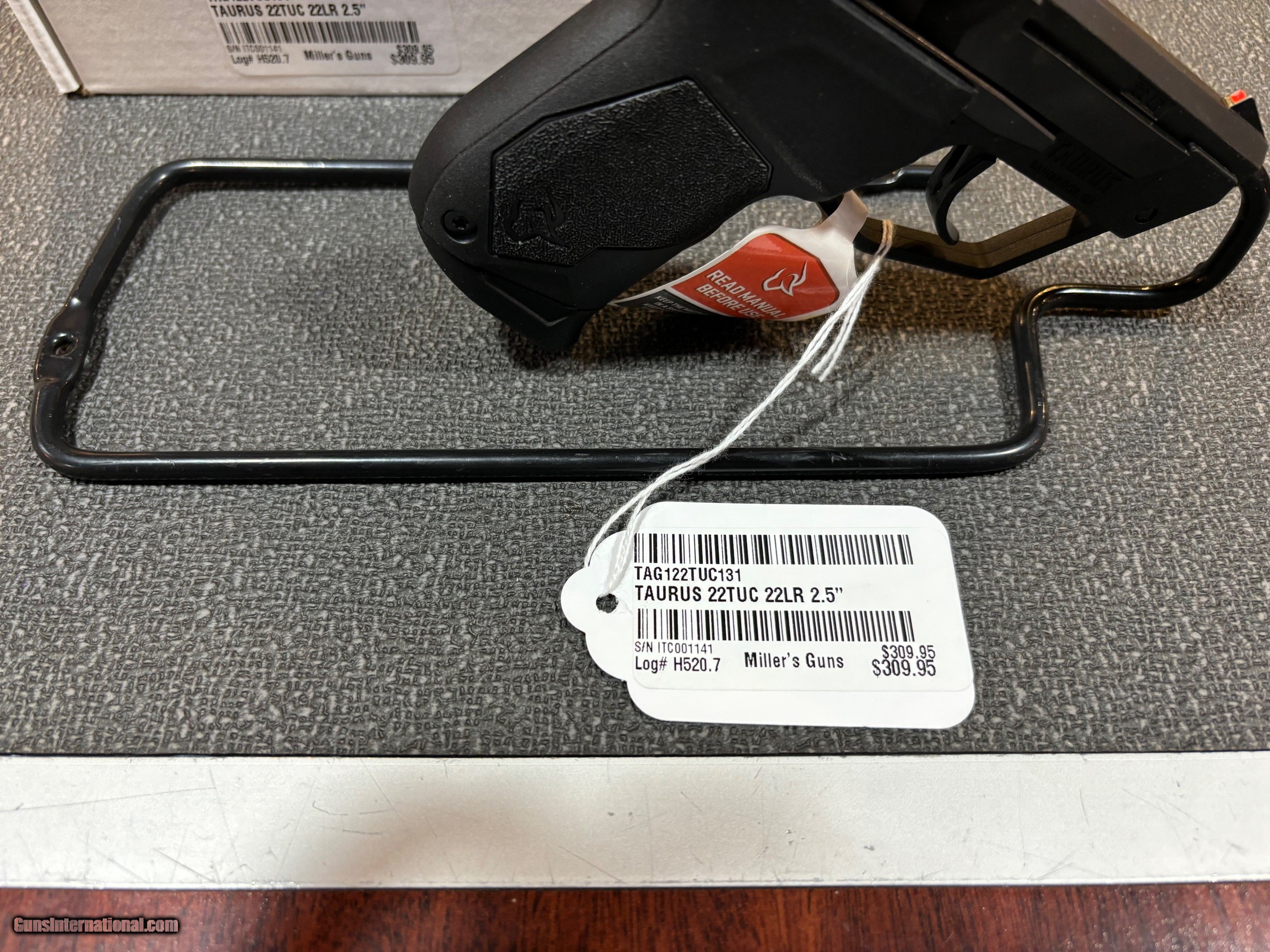 Description: Taurus 22TUC .22lr Flip up barrel 9 round capacity (1) magazine included SOLD Handgun Caliber: .22 Long Rifle Manufacturer: Taurus Model: 22TUC Serial Number: ITC001141 Condition: NEW |