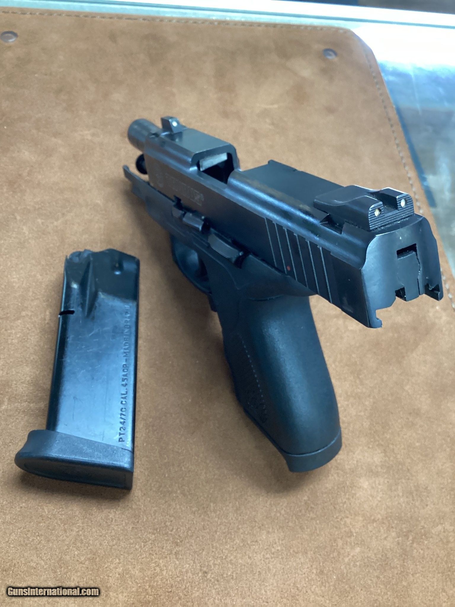 Description: Guns Listing ID: 549384 With a loaded chamber indicator, thumb safety and picatinny rail, this handgun makes for an excellent carry gun. The white dot sights and ergonomic grips make this a comfortable option. SOLD Manufacturer: TAURUS Model: 24/7 Caliber Info: .45 ACP Condition: Used - Non-Certified Barrels: 3.3" BARREL Action: SEMI AUTOMATIC Finish: BLACK |