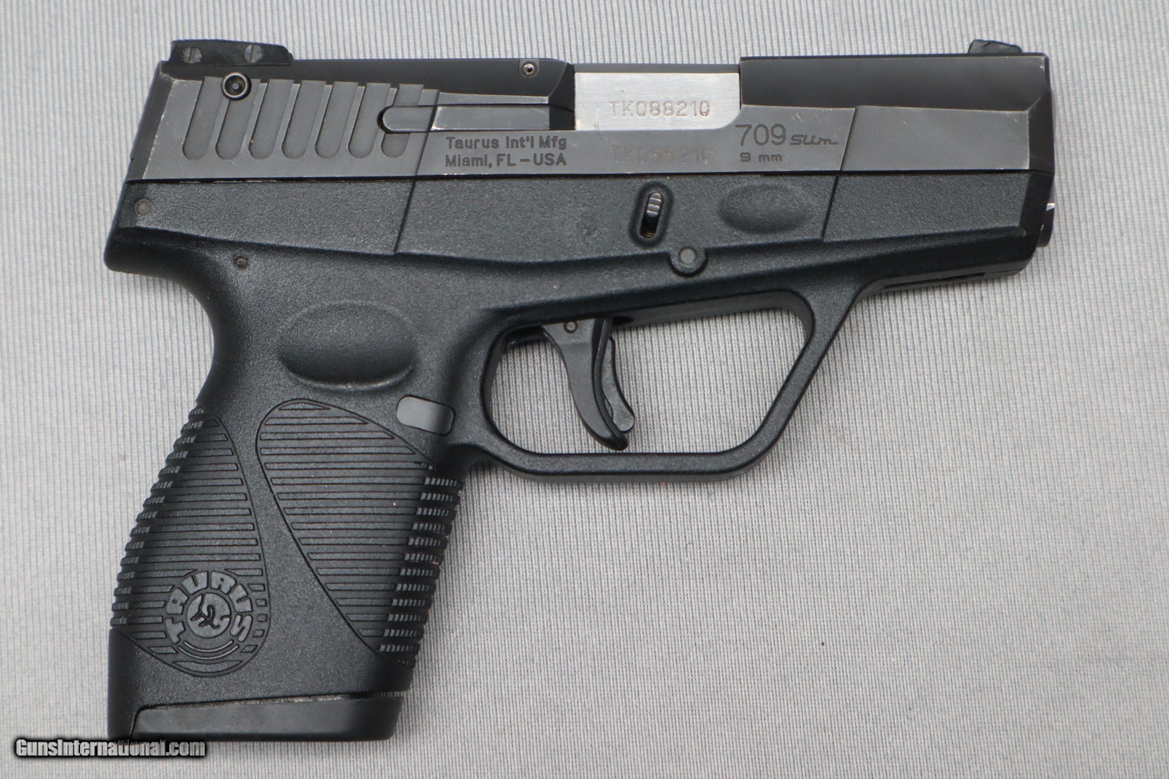 Description: This Taurus 709 Slim is a right handed, striker fired, semiautomatic pistol chambered in 9mm Luger. It has a damaged rear iron sight. It has light wear on all external components. 9mm Luger Chambers: 9mm Luger Metal Condition: Fair Bore Condition: Good Barrels: 3 Weight: 1.25 lbs Sights: Adjustable Iron Sights (damaged) Item Location: Missoula, MT Price: $179.99 Contact Seller |