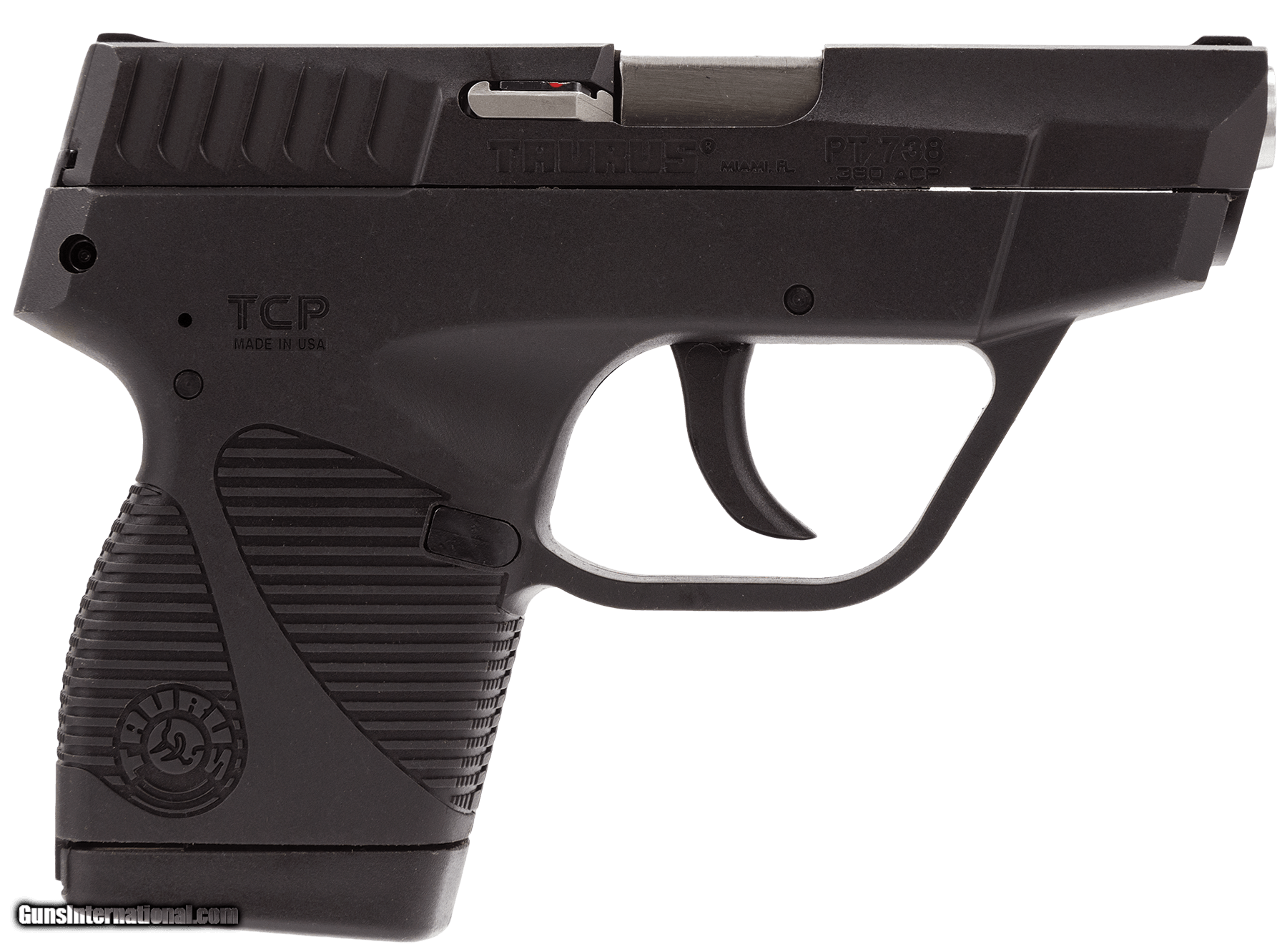 Description: Guns Listing ID: prod4085 Short for “Taurus Compact Pistol,” the Taurus TCP is the lightest pistol ever made by the company. Well-suited for concealed carry, this semi-automatic handgun is chambered in 380 ACP and made with a lightweight, durable polymer frame. The integral grips with lined front and backstraps ensure a steady grasp through each round fired, while the low-profile fixed sights aid in target acquisition. Other features of this American-made pistol include a smooth trigger, generously-sized trigger guard, and loaded chamber indicator for added safety. SOLD Manufacturer: TAURUS Model: 738 Caliber Info: .380 ACP Condition: new Barrels: 2.8 BARREL |