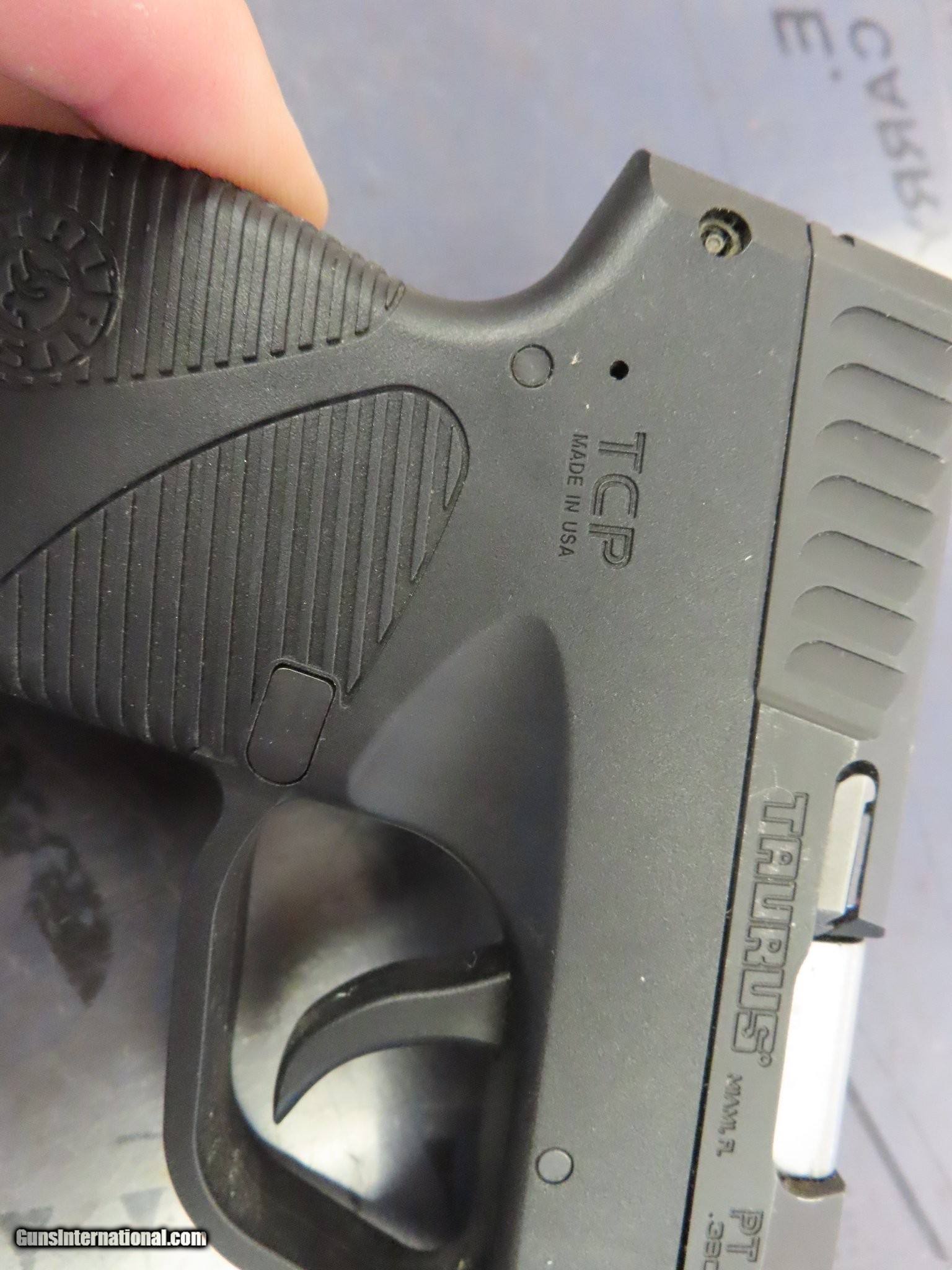 Description: Guns Listing ID: 570541 Taurus TCP .380 acp. Gun comes with just 1 mag. Handling and holster wear but in good shape. SOLD Manufacturer: TAURUS Model: 738 TCP Caliber Info: .380 ACP Condition: Used - Non-Certified Barrels: 2.75" BARREL Action: SEMI AUTOMATIC Finish: blued |