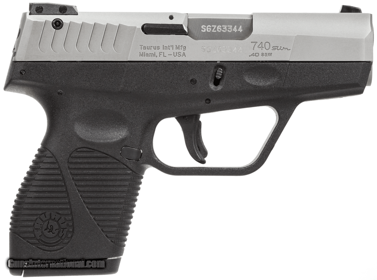 Description: Guns Listing ID: 452880 The semi-automatic striker fired Taurus Slim aims to be one of the most easily concealable guns on the market. The Slim stands at just one inch in width and only nineteen ounces in weight. With a 3.2 barrel length this sub-compact gun is hard to spot even under lighter-duty clothing and at just 19 ounces it wont weigh down any concealed carry user. The Slim also features Taurus standard loaded chamber indicator and the key operated Taurus Security System. Details Taurus 1740039FS 740 Slim SingleDouble 40 Smith Wesson (SW) 3.2 61 Black Polymer GripFrame Stainless Steel SOLD Manufacturer: TAURUS Model: 740 SLIM FS Caliber Info: 40 S&W Condition: new Barrels: 3.25 BARREL |