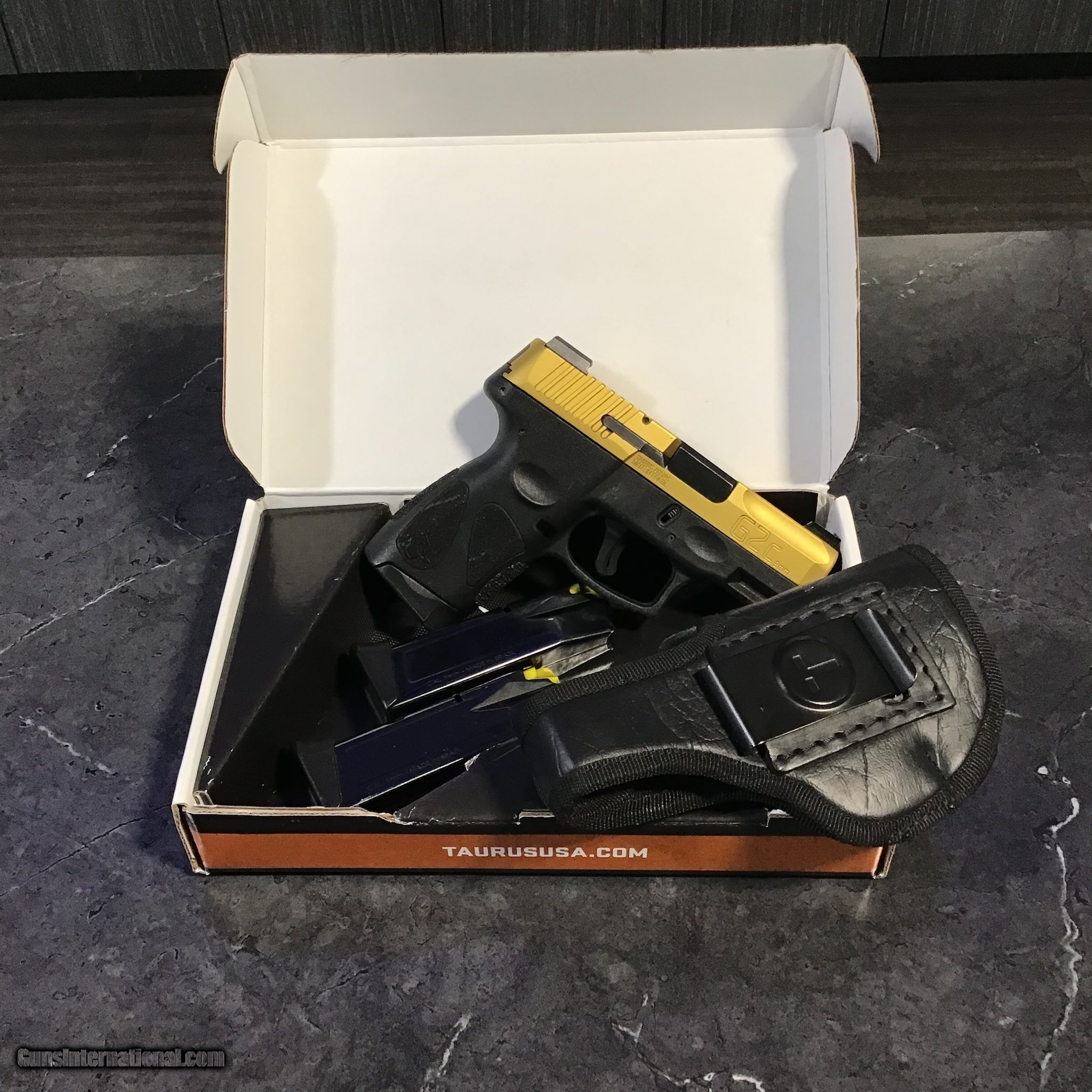 Description: Guns Listing ID: 1126494 Firearm comes as is with original case, 3 magazines, and leather holster SOLD Manufacturer: TAURUS Model: G2C Caliber Info: 9MM LUGER (9X19 PARA) Condition: Used - Non-Certified Barrels: 3 BARREL Finish: BLACK AND GOLD |