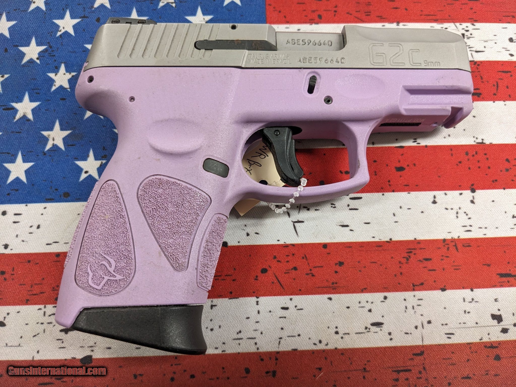 Description: Guns Listing ID: 1262091 TAURUS Pistol Semi-Automatic 9mm Cal. G2C SN: ABE596640 ONE MAG IN HOLSTER 11113435 SOLD Manufacturer: TAURUS Model: G2C Caliber Info: 9MM LUGER (9X19 PARA) Condition: Used - Non-Certified Barrels: 3.25 BARREL Finish: PURPLE |