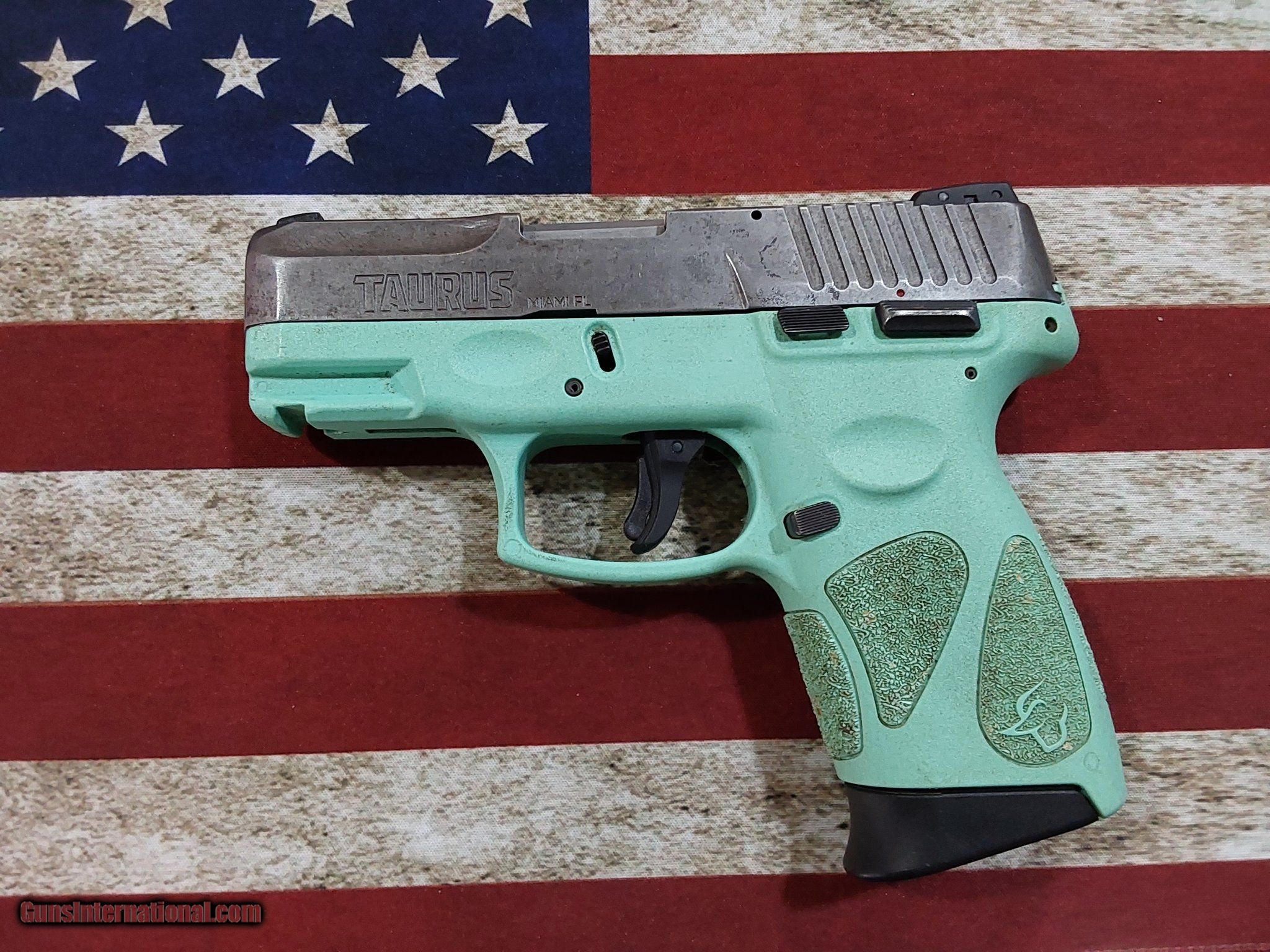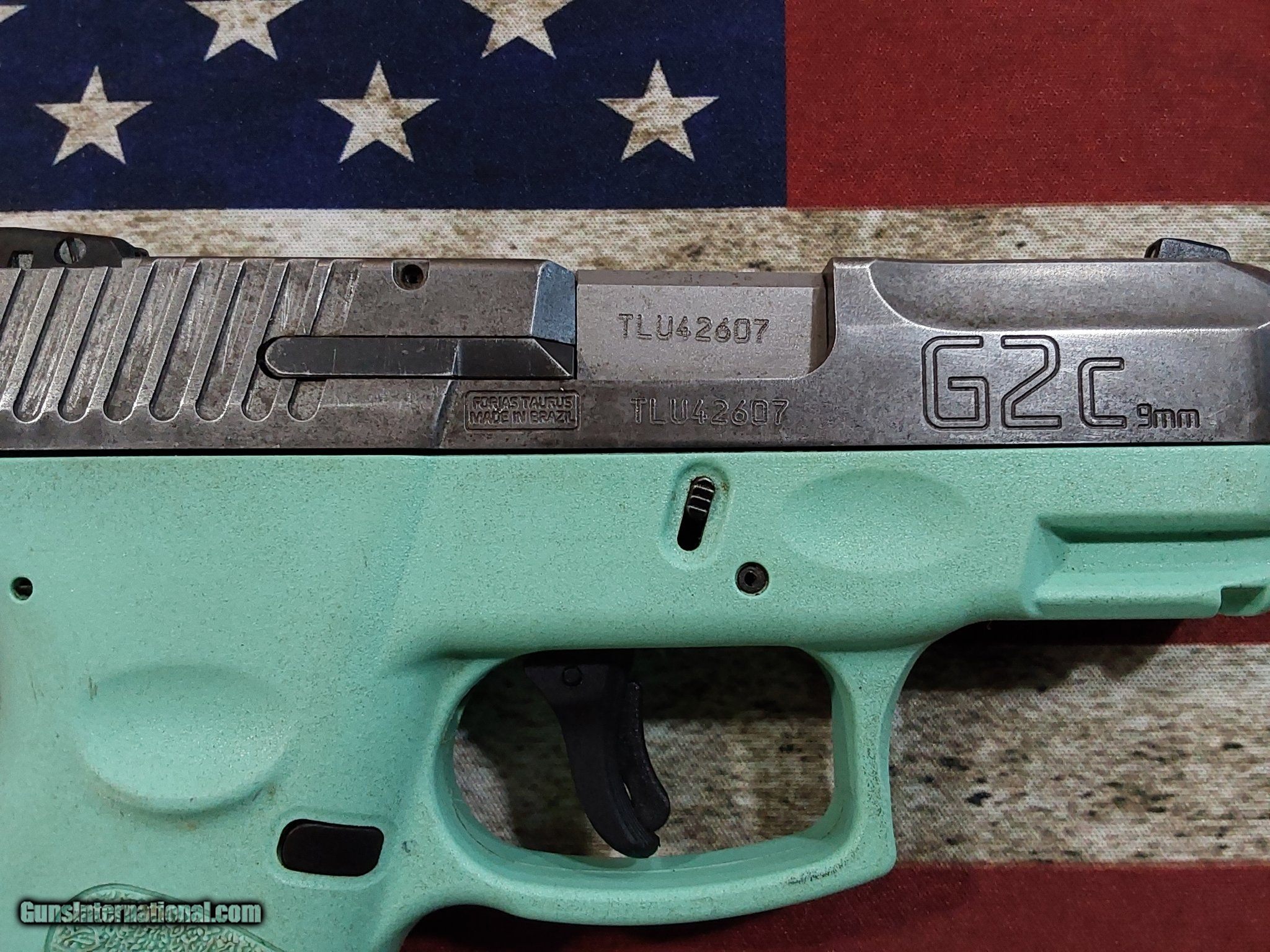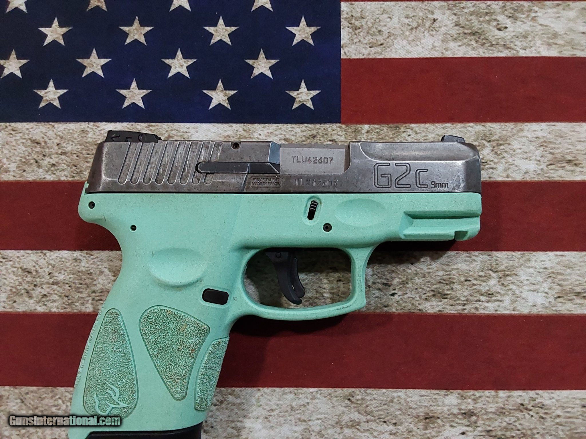 Description: Guns Listing ID: 484685 Nice teal Taurus carry SOLD Manufacturer: TAURUS Model: G2C Condition: Used - Non-Certified Barrels: 2.75 Gauge Info: 9MM LUGER (9x19 PARA) Finish: two tone cerakote |