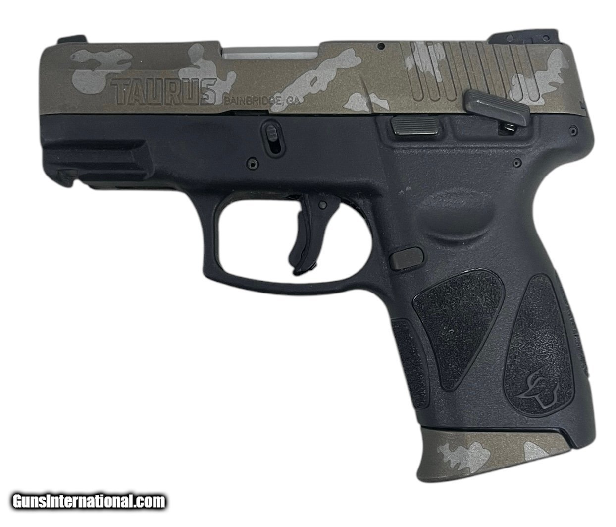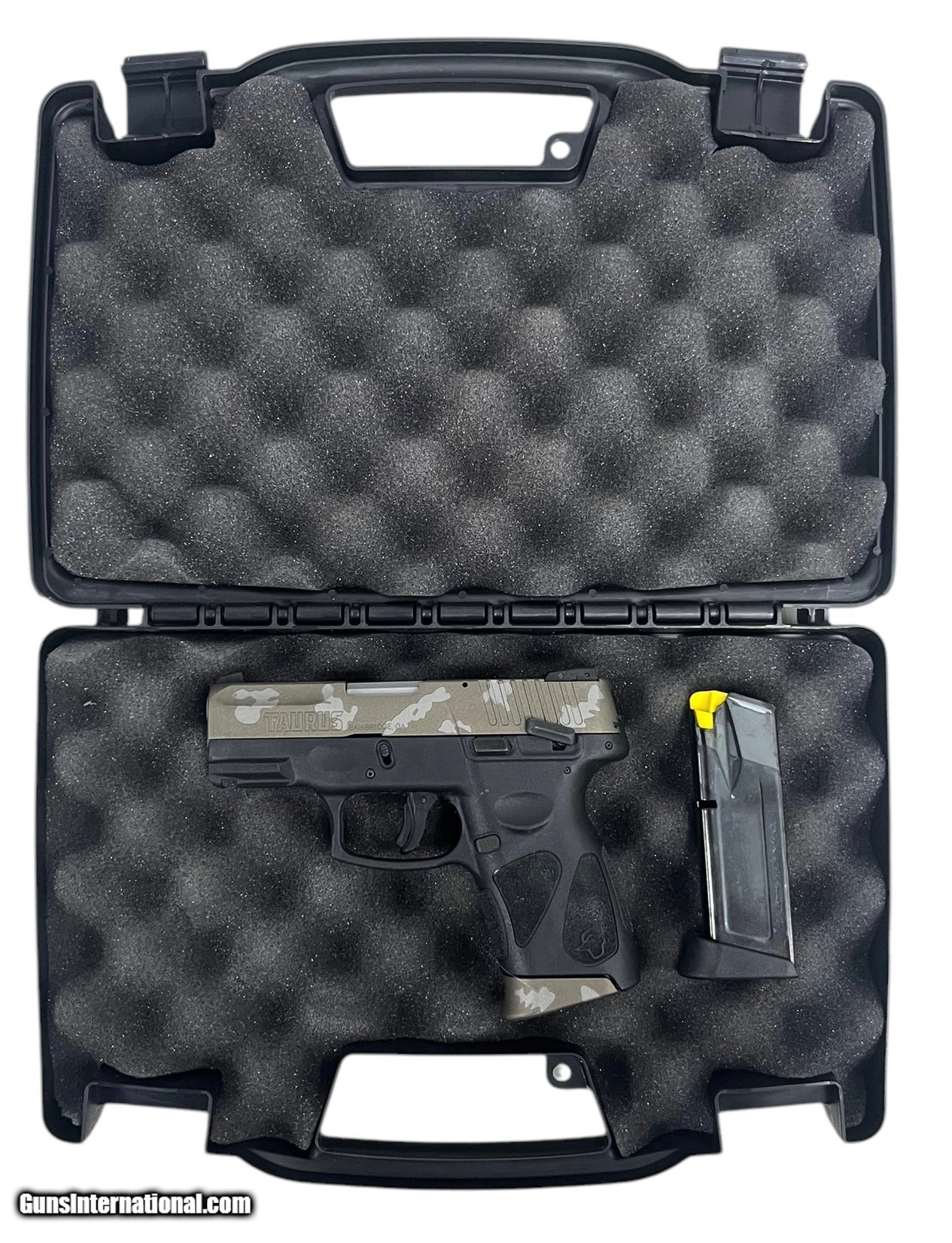 Description: Guns Listing ID: 492204 Pistol is preowned and in stellar condition. Virtually no handling marks or signs of use are present, if any at all. Gorgeous piece. A hard plastic carry case and two magazines are included. Please note that only one of the magazines has the same camo finish as the pistol, the other magazine is a standard black one. Barrel is 3.2”, chambered in 9mm with a capacity of 12 rounds. All orders are shipped within two business days following payment - orders are often shipped sooner than this. Payment is required within 48 hours of listings end. Listing photos show everything that is included with purchase - anything not pictured should NOT be assumed to be included unless otherwise stated in listing description. SOLD Manufacturer: TAURUS Model: G2C Caliber Info: 9MM LUGER (9x19 PARA) Condition: Used - Non-Certified Barrels: 3 Finish: camo |