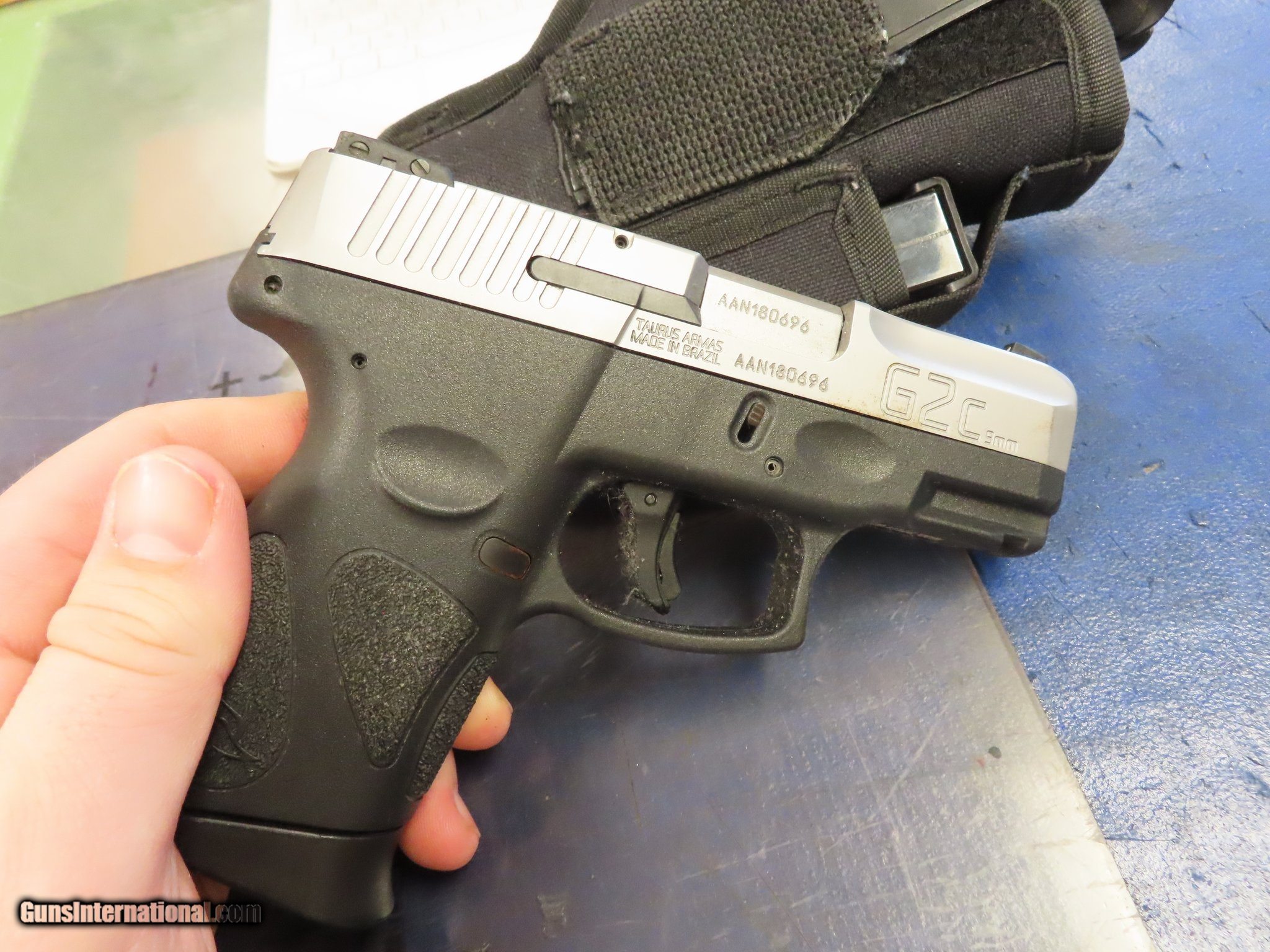 Description: Guns Listing ID: 522946 Taurus G2c 9mm. Gun comes with 2 mags and holster. Some handling and wear and could use a cleaning. In good shape. SOLD Manufacturer: TAURUS Model: G2C Caliber Info: 9MM LUGER (9x19 PARA) Condition: Used - Non-Certified Barrels: 3.26 Action: SEMI AUTOMATIC Finish: black & stainless |