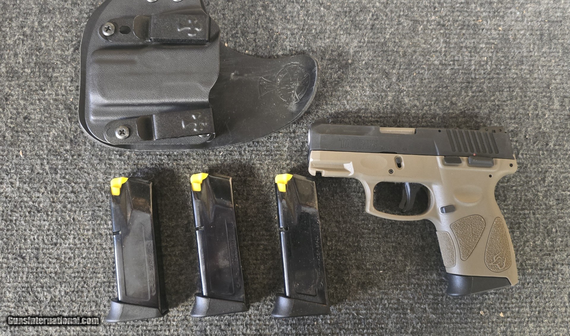 Description: Guns Listing ID: 532759 Pre-Owned Taurus G2C Fde/Black 9mm with factory box and accessories 4 mags and a holster SOLD Manufacturer: TAURUS Model: G2C Caliber Info: 9MM LUGER (9x19 PARA) Condition: Used - Non-Certified Barrels: 3.26 Action: SEMI AUTOMATIC Finish: black |