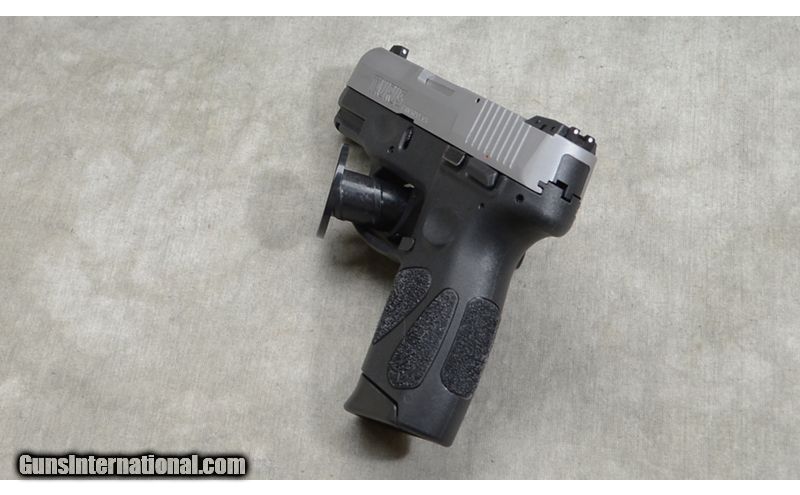 Description: A 21 oz compact autoloader that could pass for new. It includes two magazines and dual safeties. 9mm Luger SOLD Chambers: 12+1 capacity. Metal Condition: Excellent. Wood Condition: Excellent. Bore Condition: Bright and shiny. Barrels: 3-1/4 inch Triggers: Factory double action trigger. Butt Pad: Textured black plastic. Weight: 21 oz. Sights: Three dot sights. Item Location: Rogers |