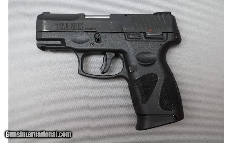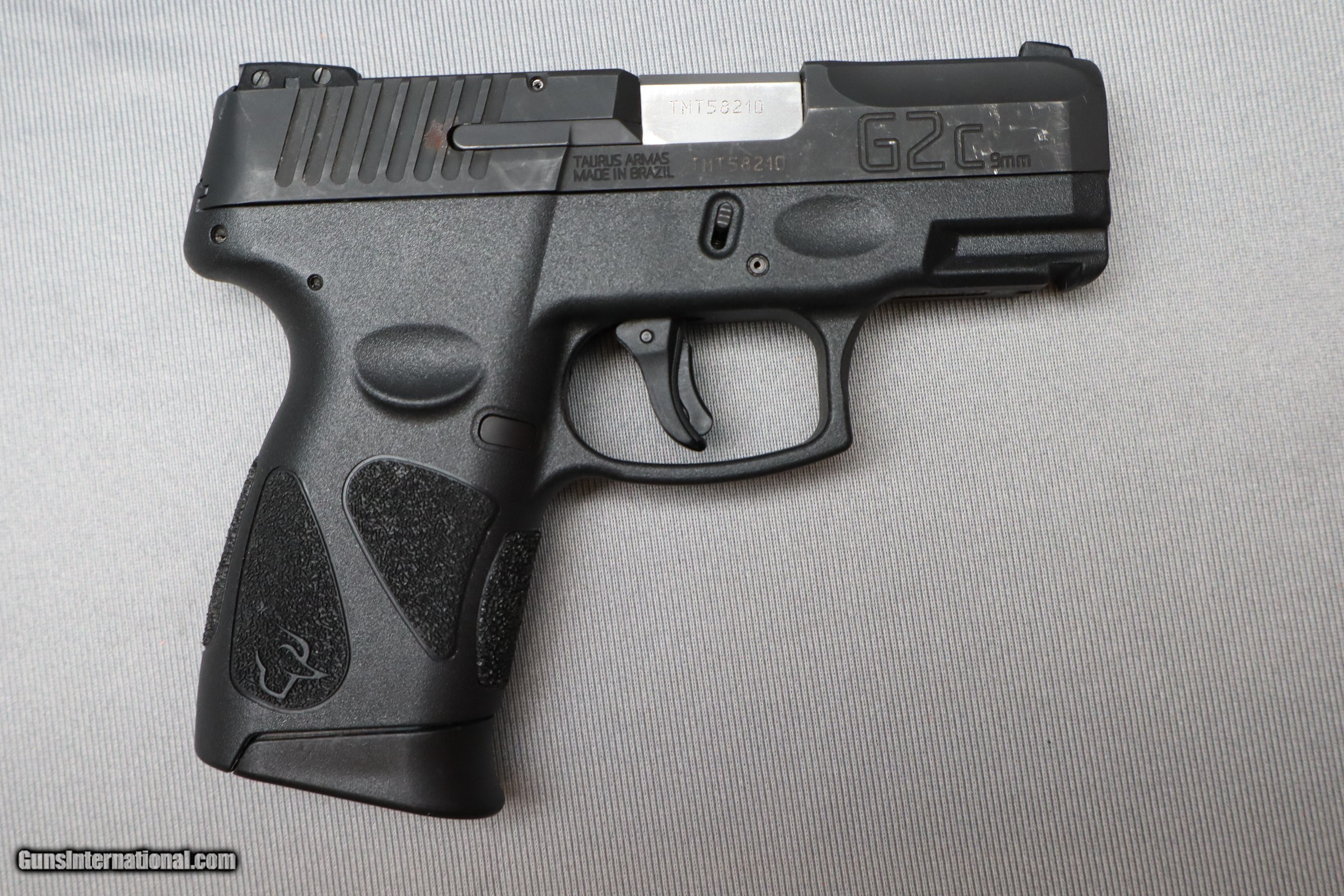 Description: This Taurus G2C is a polymer framed, right handed, striker fired, semiautomatic pistol chambered in 9mm Luger. This pistols rear sights are dented, and its slide has scratches on it. 9mm Luger SOLD Chambers: 9mm Luger Metal Condition: Fair Bore Condition: Good Barrels: 3 Sights: Adjustable iron sights Item Location: Missoula, MT |