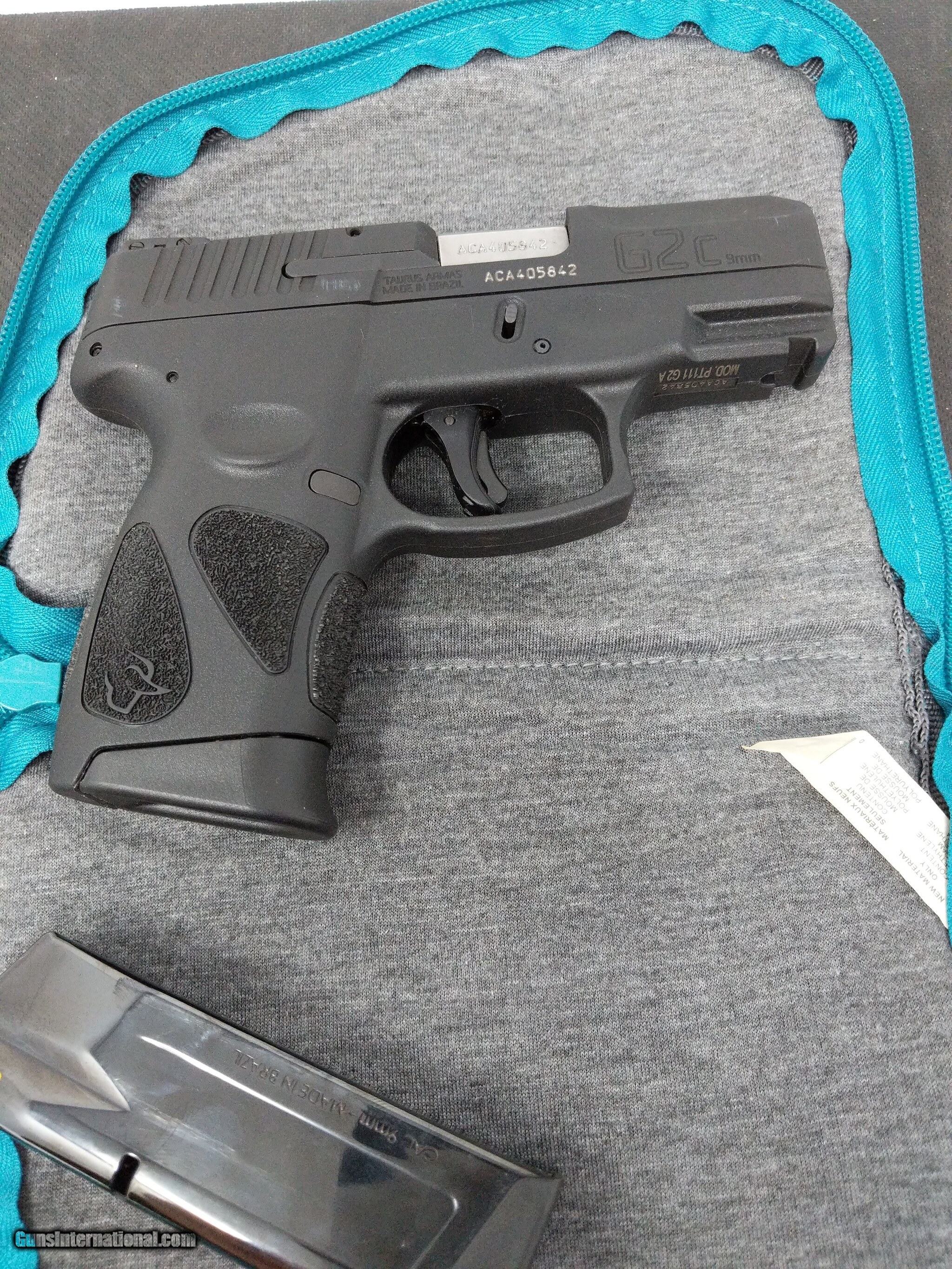 Description: Guns Listing ID: 615753 Great condition Taurus G2C! In \"girls with guns\" soft bag with two 12rd mags 0922TZZ SOLD Manufacturer: TAURUS Model: G2C Caliber Info: 9 MM Condition: Used - Non-Certified Barrels: 3.25 BARREL Finish: BLACK |