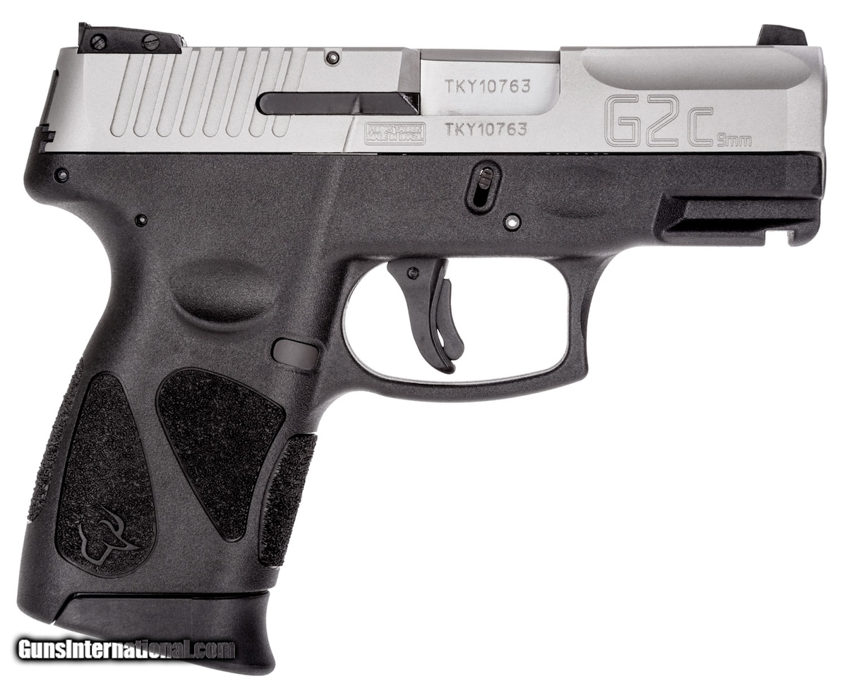 Description: Guns Listing ID: 54404 With its lightweight polymer frame, thin profile, and ramped 3.2\" barrel, this G2C is the ideal concealed carry handgun. The G2C features an accessory rail, high-profile sights with a fixed front, an aggressive, textured grip and melted edges for added comfort and easy concealment. It has a loaded chamber indicator, manual and trigger safety. This G2C model has a stainless slide finish with a black frame. SOLD Manufacturer: TAURUS Model: G2C Caliber Info: 9MM LUGER (9X19 PARA) Condition: new Barrels: 3.2" barrel |