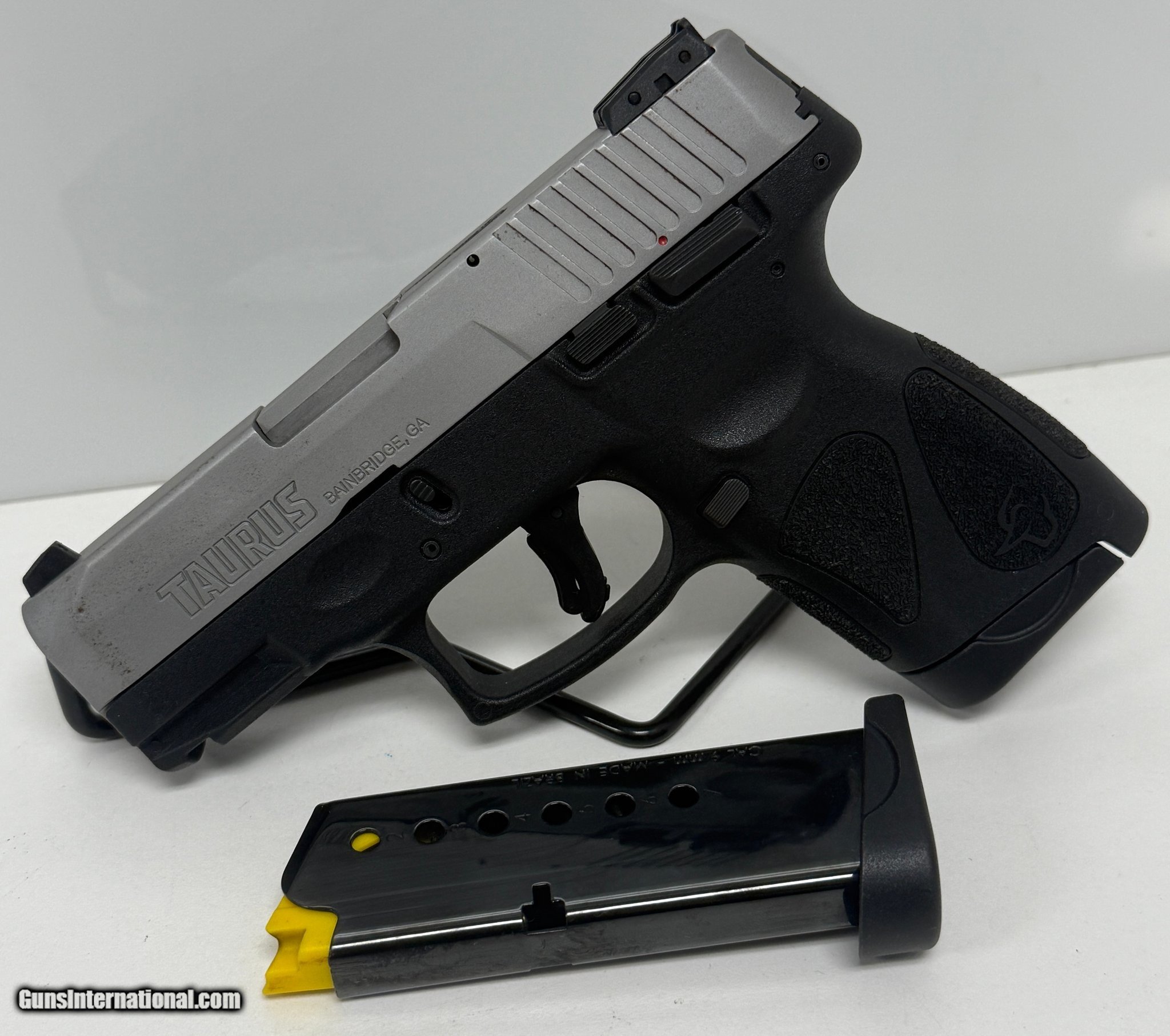 Description: Guns Listing ID: 549122 TAURUS G2S - 9MM LUGER (9X19 PARA) - 7 ROUNDS - 3.25\" BARREL SEMI-AUTO PISTOL Nice used condition - See photos for details. Included: pistol and 2 magazines SOLD Manufacturer: TAURUS Model: G2S Caliber Info: 9MM LUGER (9x19 PARA) Condition: Used - Non-Certified Barrels: 3.25" BARREL Action: SEMI AUTOMATIC Finish: black & stainless |
