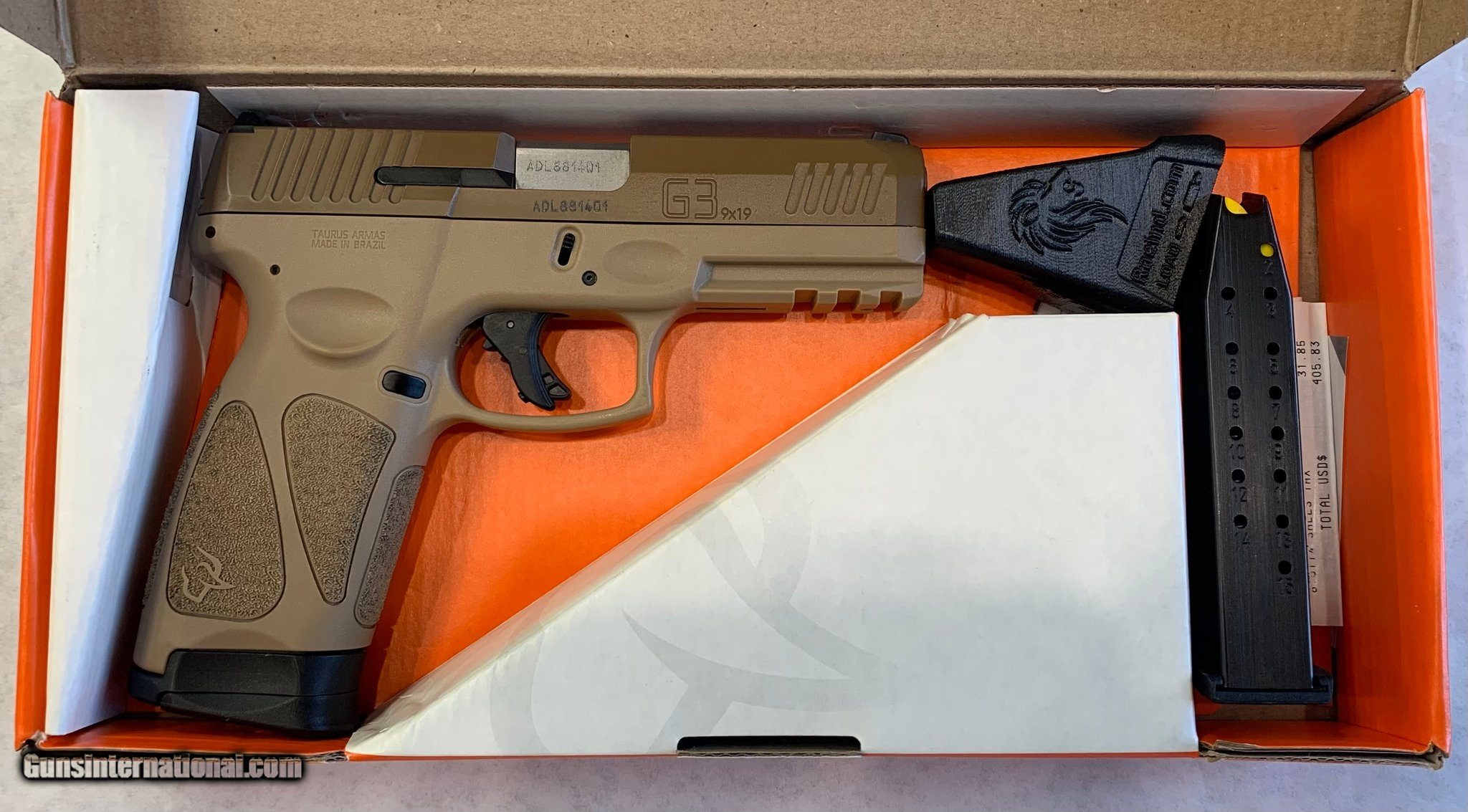 Description: Guns Listing ID: 1305753 The pistol is a great bang-for-your-buck! It comes with 1-17 round magazine, 1-15 round magazine, and the original box. This is a very good gun for its price range. SOLD Manufacturer: TAURUS Model: g3 Caliber Info: 9MM LUGER (9X19 PARA) Condition: Used - Non-Certified Barrels: 4 BARREL Finish: COYOTE TAN |