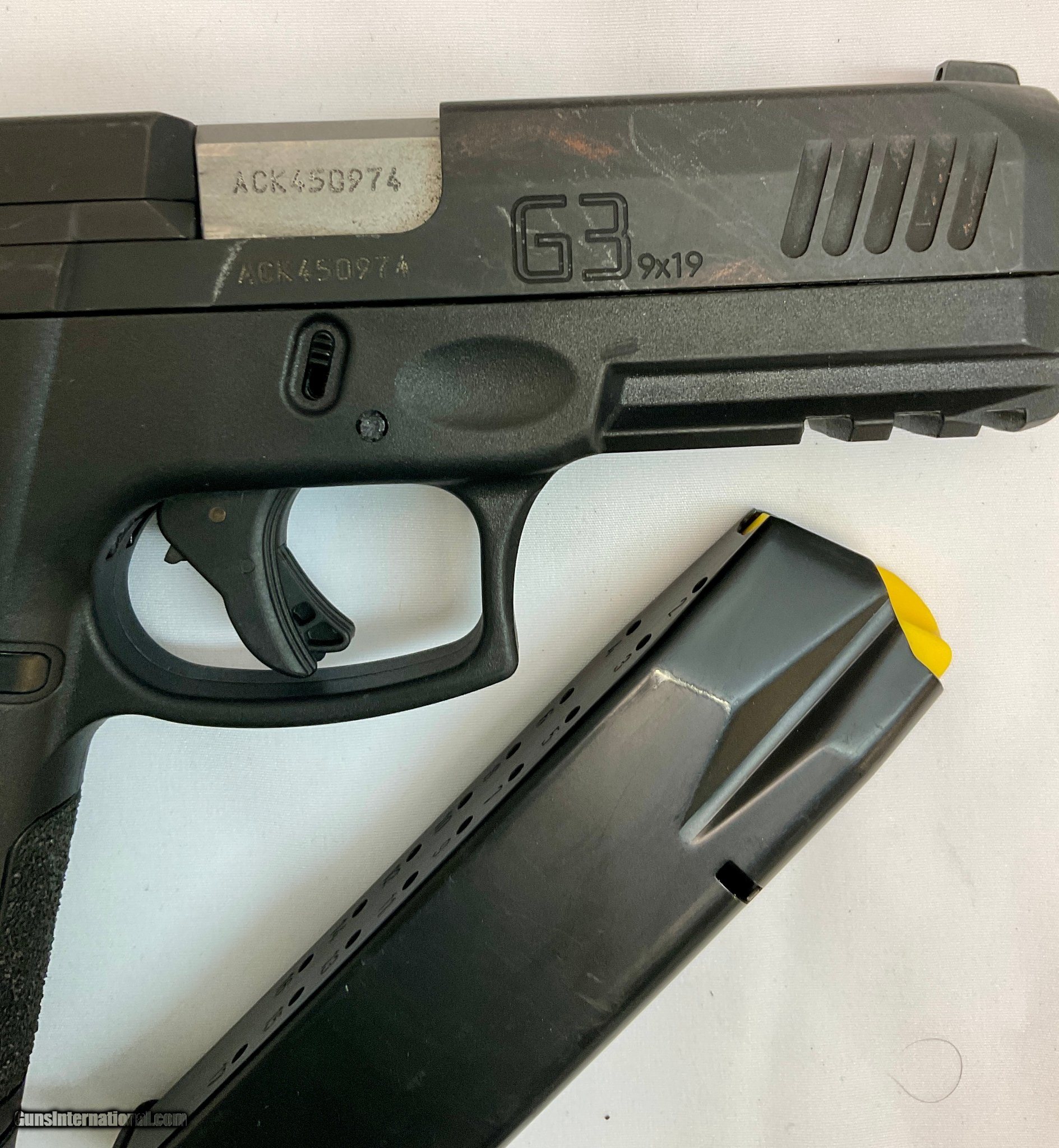 Description: Guns Listing ID: 504783 The Taurus G3 9mm Full Size Single Action Pistol is a semi-automatic centerfire pistol with a stainless steel barrel and molded polymer frame. It is equipped with a manual striker block and trigger safety, as well as a 2x17 round magazine with loaded chamber indicator. Features and Benefits Single action with restrike Stainless steel centerfire barrel Tenifer Black finished slide Molded polymer frame Striker block and trigger safety Fixed white dot front sight and a serrated adjustable rear sight 2 x 17 round magazine capacity Loaded chamber indicator Specifications Product weight (lb.): 1.55 Product length (in.): 6.05 Activity: Recreational Shooting Product width (in.): 1.2 Product height (in.): 5.2 SOLD Manufacturer: TAURUS Model: G3 Caliber Info: 9MM LUGER (9x19 PARA) Condition: Used - Non-Certified Barrels: 3.5 Action: SEMI AUTOMATIC Finish: black |