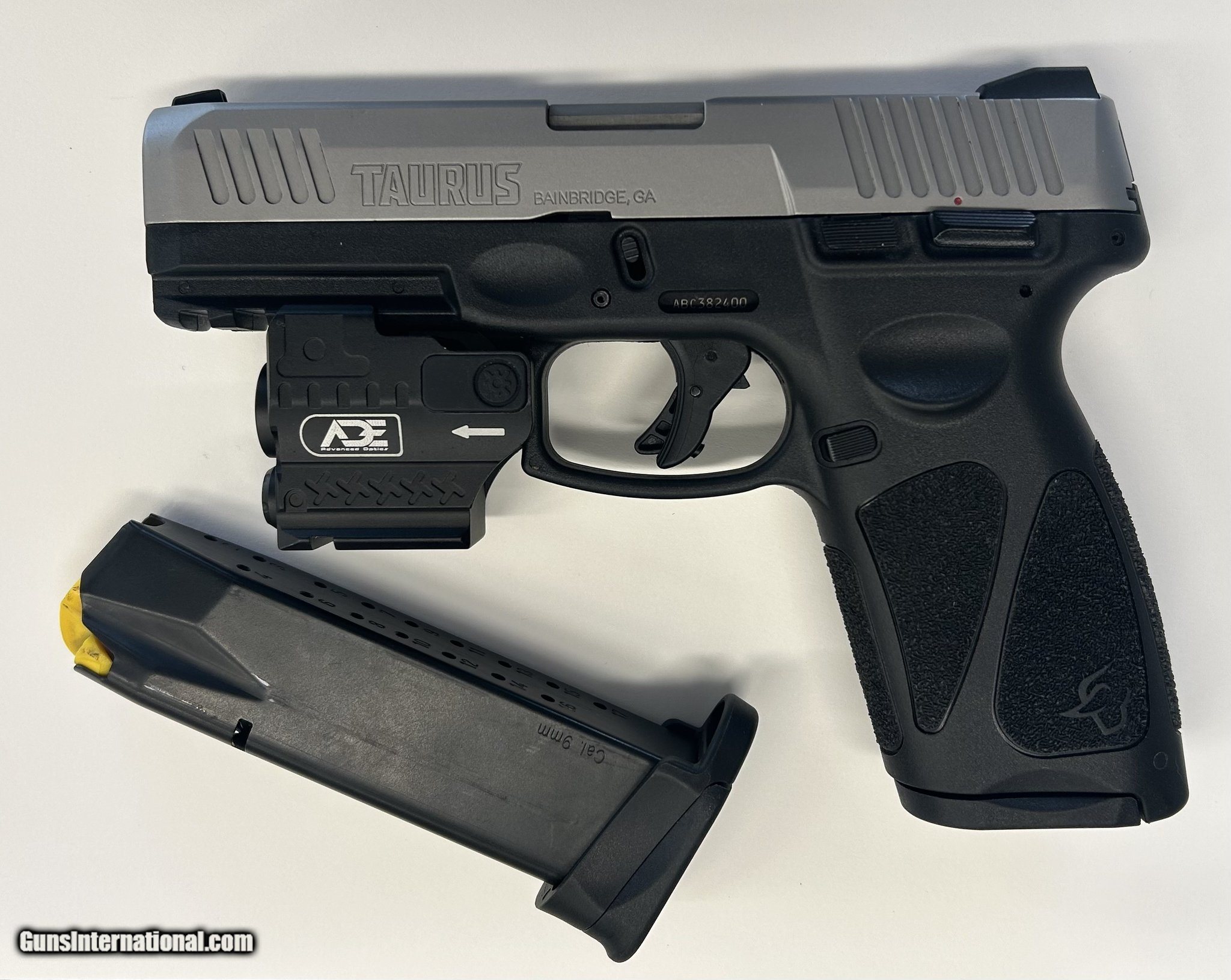 Description: Guns Listing ID: 530083 Taurus USA, G3, Striker Fired, Semi-automatic, Polymer Frame Pistol, Full Size, 9MM, 4\" Barrel, Matte Finish, Silver Slide, Black Frame, Fixed Steel Front Sight, Drift-Adjustable Steel Rear Sight w/ Serrated Ramp, Manual Thumb Safety, 2 Magazines, (1) 15-Round and (1) 17-Round Warning 1-15 Round & 1-17 Round Magazine Adjustable Sights Re-Strike Capability Manual Thumb Safety Advanced Optics Light/Laser included SOLD Manufacturer: TAURUS Model: G3 Caliber Info: 9MM LUGER (9x19 PARA) Condition: Used - Non-Certified Barrels: 4 Action: SEMI AUTOMATIC Finish: stainless/black |