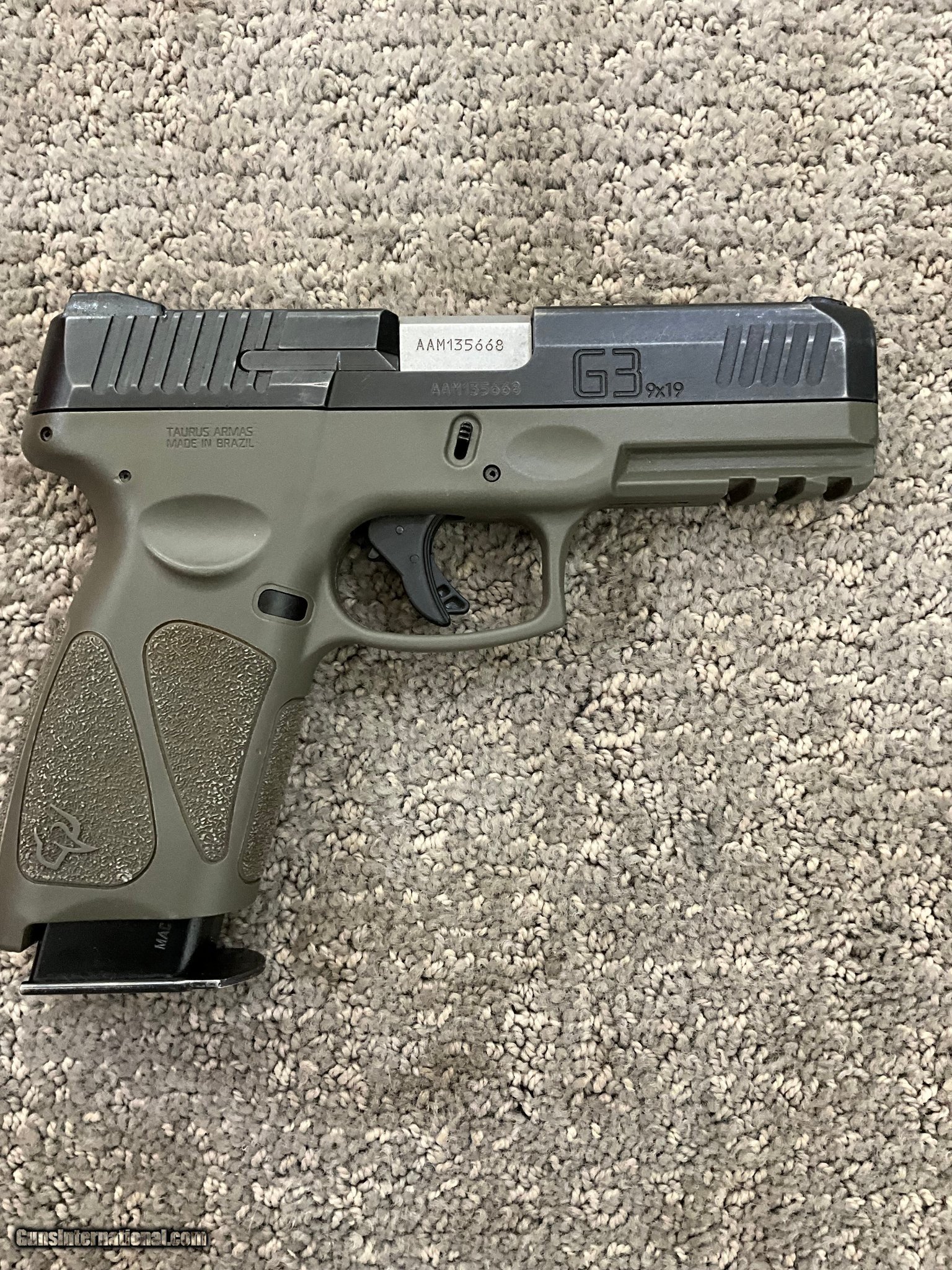 Description: Guns Listing ID: 555847 Good condition have some wear along the slide SOLD Manufacturer: TAURUS Model: G3 Caliber Info: 9MM LUGER (9x19 PARA) Condition: Used - Non-Certified Barrels: 4 BARREL Action: SEMI AUTOMATIC Finish: BLACK & GREEN |