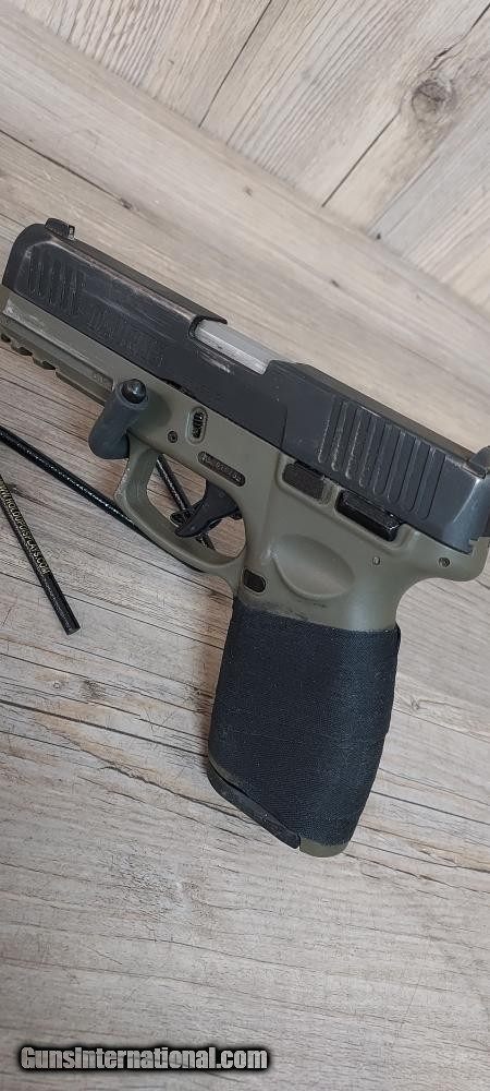 Description: Guns Listing ID: 607282 The Taurus G3 is a compact, striker-fired semi-automatic pistol chambered in 9×19mm (9mm). It is designed with a polymer frame and a steel slide, aiming to balance durability with reduced weight. The G3 is commonly noted for its ergonomic grip texture, front and rear slide serrations, and a consistent trigger system intended for controlled handling. Standard features often include a manual thumb safety, a loaded chamber indicator, and steel sights with a contrasting front dot for visibility. The pistol typically ships with multiple magazines of varying capacities and includes an accessory rail for compatible attachments. Its size and feature set place it in the compact category, making it a frequent topic of discussion in comparisons of modern polymer-frame pistols. Manufacturer: TAURUS Model: G3 Caliber Info: 9MM LUGER (9x19 PARA) Condition: Used - Non-Certified Barrels: 4" BARREL Action: SEMI AUTOMATIC Finish: BATTLEFIELD GREEN/BLACK Price: $199.99 Contact Seller |