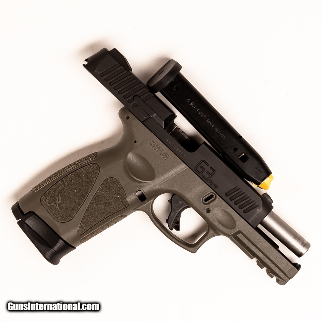 Description: Guns Listing ID: 635591 Delivering an extraordinary new take on the traditional striker fired pistol. Packing more innovation, more features and more punch into a range-friendly, full-size polymer frame. The Taurus G3 is a striker fired semi-automatic handgun that is affordable and reliable. It makes an excellent self-defense sidearm. Get the best bang for your buck when you get a Certified Used Firearm . When you see the Certified Used stamp on any of our firearms, you can be confident that you’re getting exactly what you want – a gun only in very good to excellent condition and held to the highest quality standard. All Certified Used Guns come with a ‘no questions asked’ return policy . PLUS, ALL CERTIFIED USED GUNS SHIP FREE! SOLD Manufacturer: TAURUS Model: G3 Caliber Info: 9MM LUGER (9X19 PARA) Condition: Used - Certified Barrels: 4 BARREL Finish: OD GREEN/BLACK |