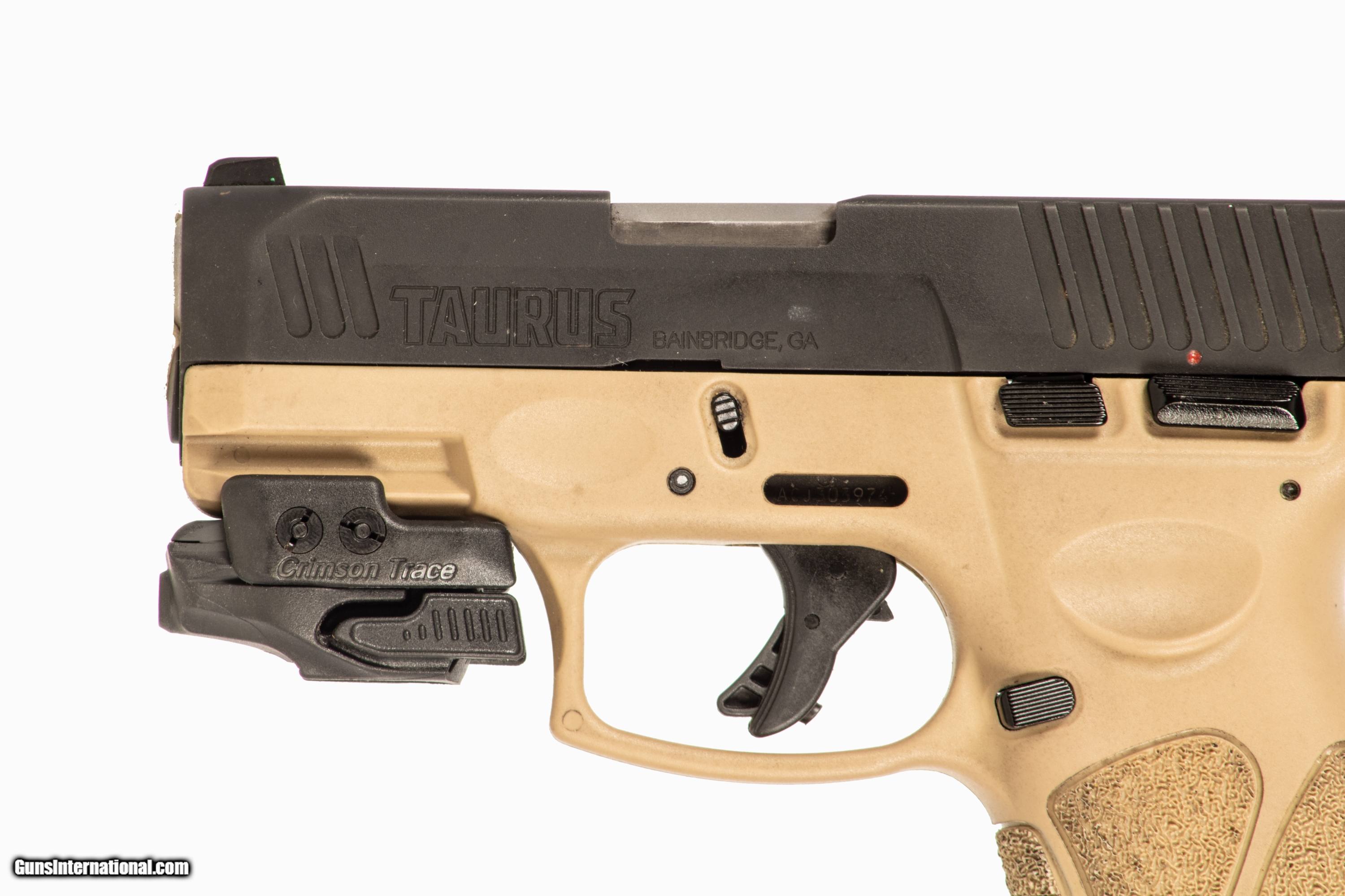 Taurus G3C chambered in 9mm with a 3 inch barrel bright & shiny bore 2 extra magazines and a Crimson Trace laser. This is a used firearm that is in very good condition and is covered by Dury's Lifetime Warranty.