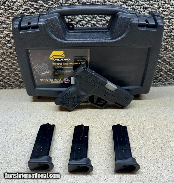 Description: Guns Listing ID: 1395386 This listing is for a USED Taurus G3C SA/DA 9mm Black Finish Optics Ready Thumb Safety 3.2\" BBL 12+1. This is a used gun, it has been fired and will have residue present. This Taurus G3C is chambered in 9mm, and it will hold 12 rounds in the magazine. This pistol comes with a 3.2 inch barrel. It comes equipped with a fixed front sight, and a fixed rear sight. This pistol also comes optics ready. There are light scratches present across the slide, and there are wear marks across the barrel. The action appears to be in good condition, the finish appears to be in overall good condition, and the bore appears to be in good condition. This pistol comes with three 12 round magazines and a black Plano case. This would be a great concealed carry pistol. ** DISCLAIMER** THIS FIREARM HAS NOT BEEN TEST FIRED*** SOLD Manufacturer: TAURUS Model: G3C Caliber Info: 9MM LUGER (9X19 PARA) Condition: Used - Non-Certified Barrels: 3.2 BARREL Finish: BLACK |