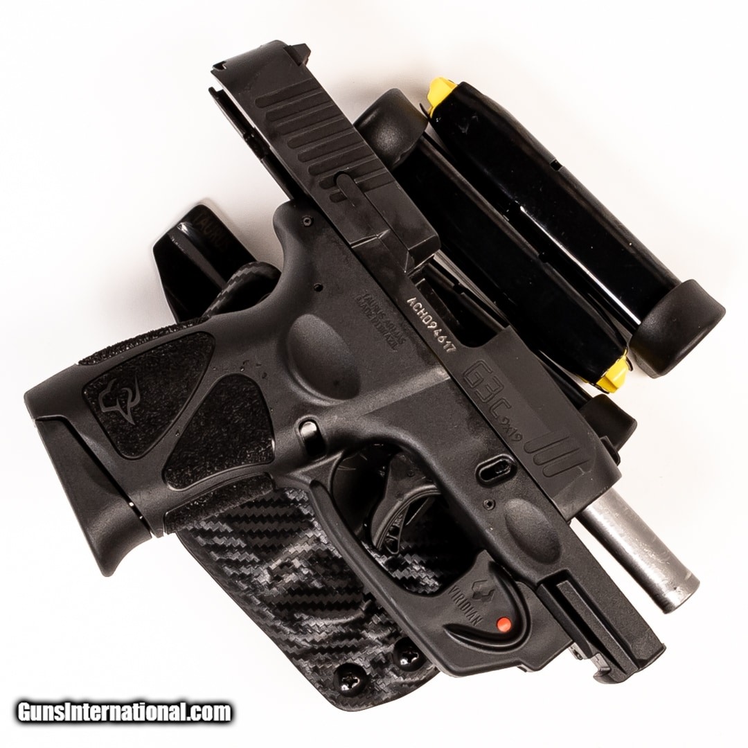 Description: Guns Listing ID: 513233 Taurus‚‚s G3C is a compact personal protection pistol that‚‚s affordable and reliable. It‚‚s well equipped for daily carry thanks to the successful blend of size and ammunition capacity. 4-12 round magazines, the original box, manual, and an IWB holster are included. Viridian laser trigger guard install SOLD Manufacturer: TAURUS Model: G3C Caliber Info: 9MM LUGER Condition: Used - Certified Barrels: 32 BARREL Finish: BLACK |