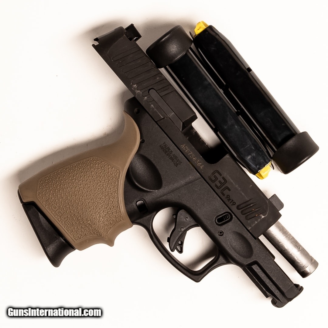 Description: Guns Listing ID: 545183 Taurus‚‚s G3C is a compact personal protection pistol that‚‚s affordable and reliable. It‚‚s well equipped for daily carry, thanks to the successful blend of size and ammunition capacity. This G3C has TSA night sights and an FDE Hogue grip cover. Overall, it‚‚s in very good condition, with some marks on the slide. Purchase includes the owner‚‚s manual, three 12-round magazines, and the original sights. SOLD Manufacturer: TAURUS Model: G3C Caliber Info: 9MM LUGER Condition: Used - Certified Barrels: 3.1 BARREL Finish: BLACK |