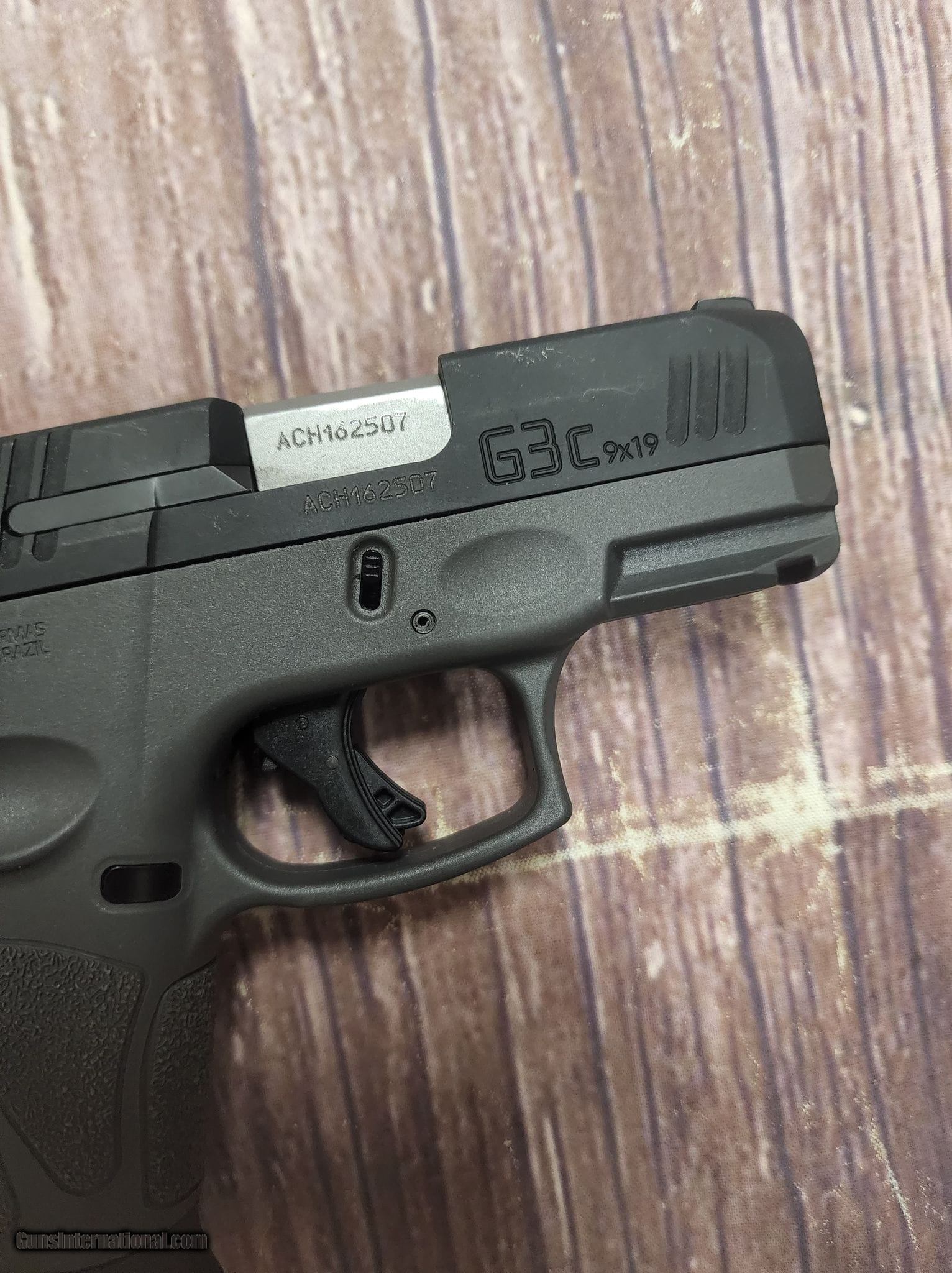 Description: Guns Listing ID: 590239 According to our rating scale I would Rate this gun \"Very Good\". I have taken multiple pictures to show the condition of it. We want you to get the best impression of it. With the hopes when you get it, that it is better than what you thought. 100% working order. scuffs and scratches on the firearm Comes with gun, box, lock and 2 mags. The bore I would rate 8 out of 10. If I had to rate the firearm in condition I would say 8 out of 10. (Please see my pictures for a better detailed idea), Please see all Photos for a very detailed Description of condition. We rate firearms using these condition standards, for modern firearms. NEW-A gun given a grade of \"new\" looks just as it did when it left the factory and has never been sold at a retail store. PERFECT-A “perfect” gun is literally as good as new, although it may have been sold in a retail store. EXCELLENT-An “excellent” rating means the gun appears to be in perfect condition but may have had minor use. VERY GOOD-A “very good” firearm is perfect mechanically but may have minor cosmetic blemishes. GOOD-A rating of “good” indicates that the gun is in proper working condition but may show signs of wear. FAIR-A “fair” firearm may or may not be in safe working order. It has not been test fired, only visually inspected. It may need repair or maintenance. UNRATED-Unrated condition means this firearm has not been test fired, it may function perfectly or it may be in need of repair. Cosmetically it may be in very good to fair condition. You will need to look at the pictures and ask questions. SOLD Manufacturer: TAURUS Model: G3C Caliber Info: 9MM LUGER (9X19 PARA) Condition: Used - Non-Certified Barrels: 3.2" BARREL Finish: BLACK/GRAY |