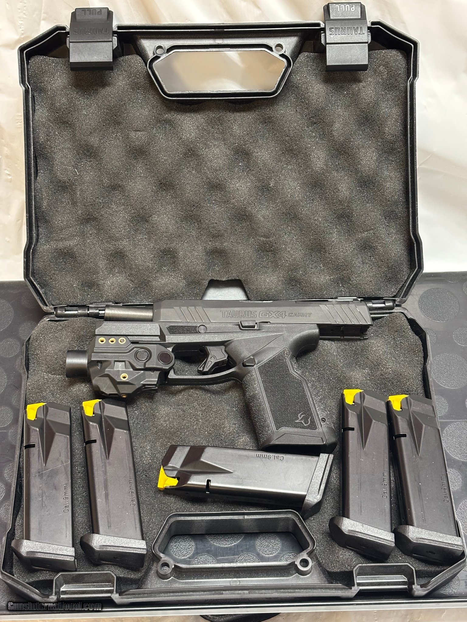 Description: Guns Listing ID: 533376 Taurus GX4 9mm W/case extra grips, laser/ flashlight and 4 extra mags. NO OTHER ACCESSORIES INCLUDED #17584 SOLD Manufacturer: TAURUS Model: GX4 CARRY [BLK] Caliber Info: 9MM LUGER (9x19 PARA) Condition: Used - Non-Certified Barrels: 3.7 BARREL Action: SEMI AUTOMATIC Finish: black |