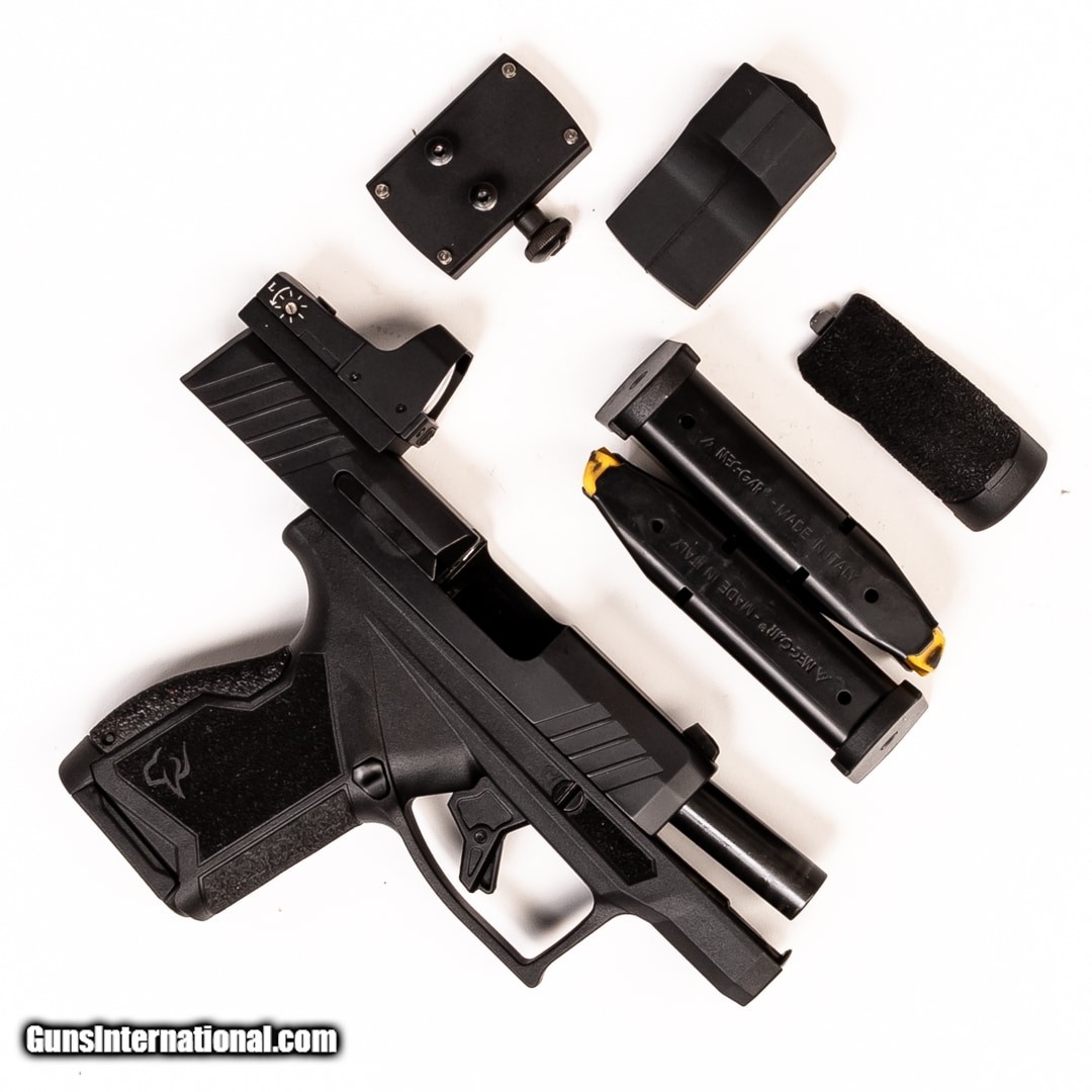 Description: Guns Listing ID: 475669 The Taurus GX4 is a semi-automatic micro-compact handgun specifically geared towards daily carry. It‚‚s an affordable yet dependable choice for self-defense. This GX4 is equipped with an ADE RD3 green dot sight. Purchase includes the original case, manual, three 11-round magazines, two sizes of backstraps, and a Taurus keychain pistol tool SOLD Manufacturer: TAURUS Model: GX4 Caliber Info: 9MM LUGER Condition: Used - Certified Barrels: 3.1 BARREL Finish: BLACK |