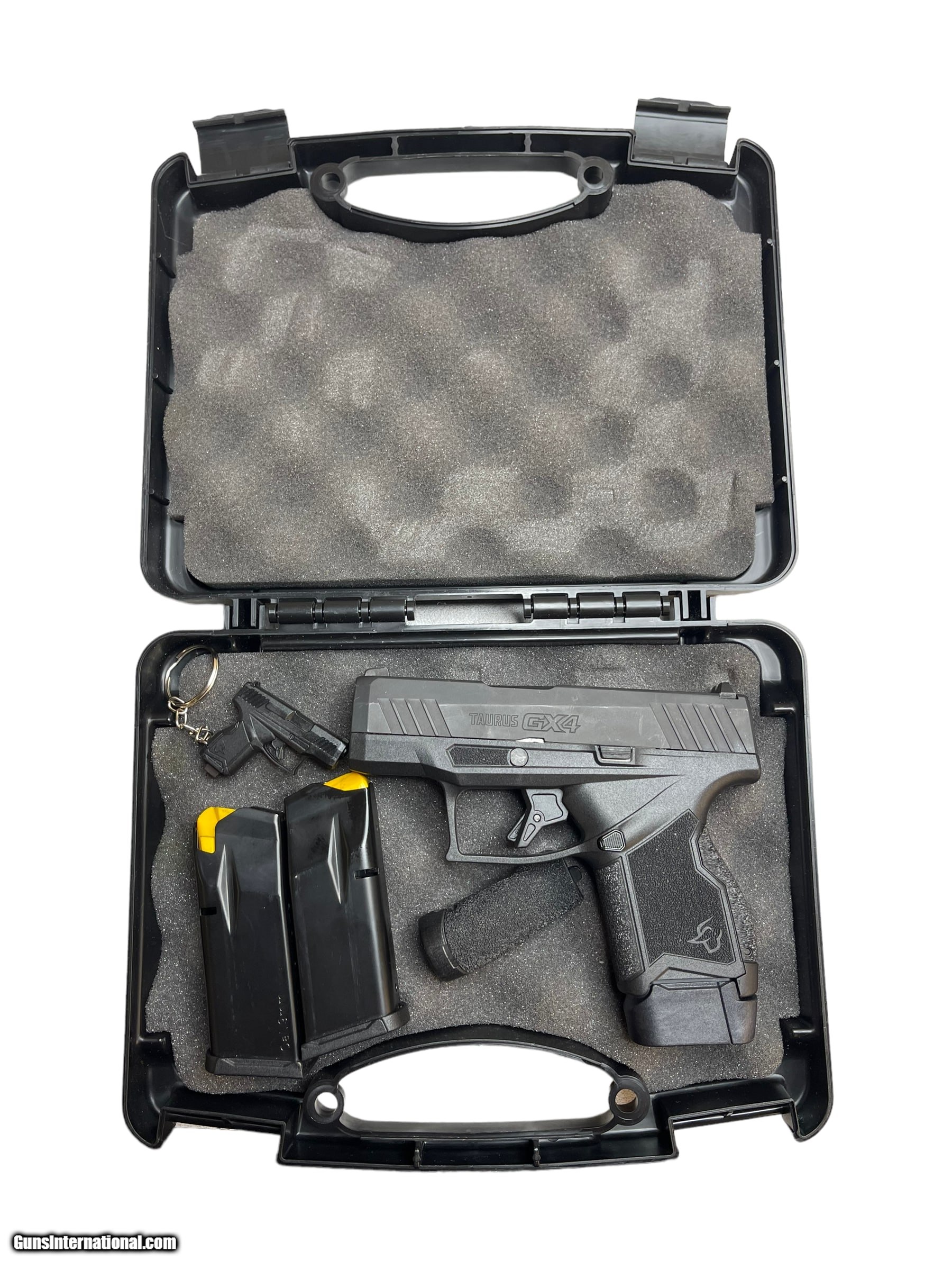 Description: Guns Listing ID: 703272 i have a taurus gx4 for sale in excellent shape for sale comes with box and 2 extra mags item - i01022888 cc - NTE SOLD Manufacturer: TAURUS Model: GX4 Caliber Info: 9 MM (9X19 PARA) Condition: Used - Non-Certified Barrels: 2 BARREL Finish: MATTE BLACK |