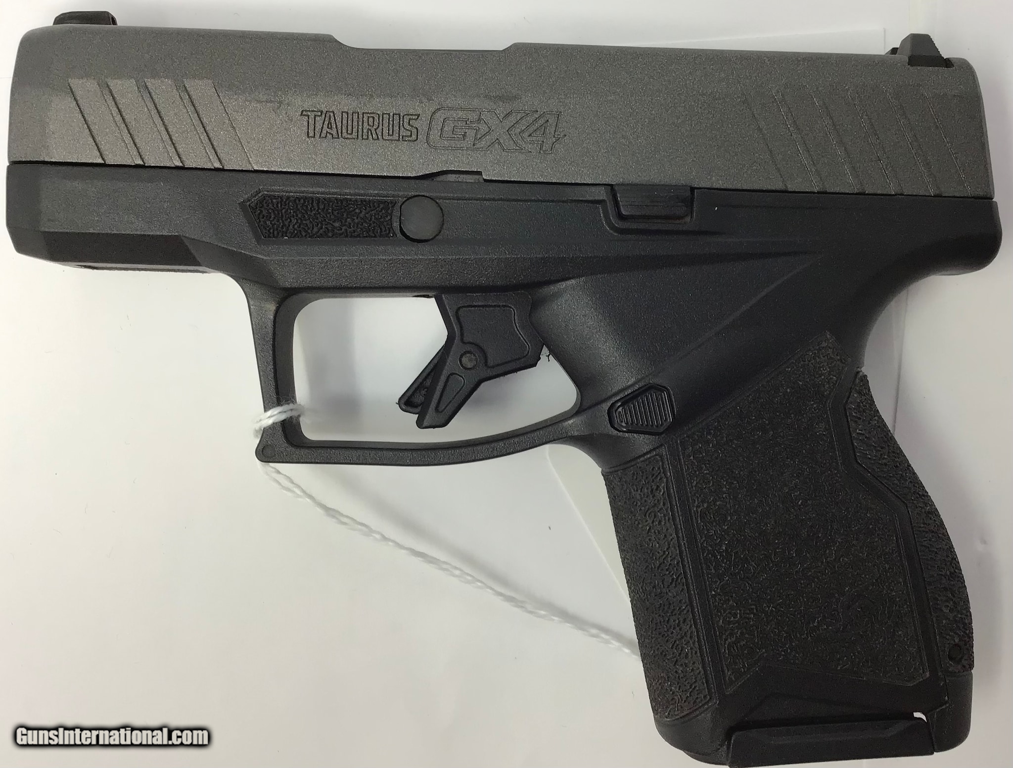 Description: Guns Listing ID: 703309 ITEM NUMBER 1-GX4M93C UPC 7-25327-93601-5 CALIBER 9MM LUGER CAPACITY 11 Rounds FRONT SIGHT Fixed REAR SIGHT Drift Adjustable MAGAZINES INCLUDED|44|ACTION TYPE SAO SPECIAL FEATURES Easy Take Down Pin for Disassembly Flat Face, Serrated Trigger for Better Comfort and Control Magazine and Grip Cuts to Aid in Magazine Stripping if Required Reversible Magazine Release Signature Indexing and Recoil Management Pad. (RMP) TECH SPECS FRAME SIZE Microcompact BARREL LENGTH 3.06 In. OVERALL LENGTH 6.05 In. OVERALL HEIGHT 4.40 In. OVERALL WIDTH 1.08 In. OVERALL WEIGHT 18.50 Oz. (Unloaded) TWIST RATE 1:10 - inch RH twist GROOVES 6 MATERIALS FRAME MATERIAL Stainless Steel FRAME FINISH Matte Stainless SLIDE MATERIAL Alloy Steel SLIDE FINISH CERAKOTE TUGSTEN BARREL MATERIAL Stainless Steel BARREL FINISH Satin Black DLC Coating SAFETY Striker Block Trigger Safety Visual Loaded Chamber Indicator SOLD Manufacturer: TAURUS Model: GX4 Caliber Info: 9MM LUGER (9X19 PARA) Condition: Used - Non-Certified Barrels: 3.06" barrel Finish: BLACK AND GRAY |