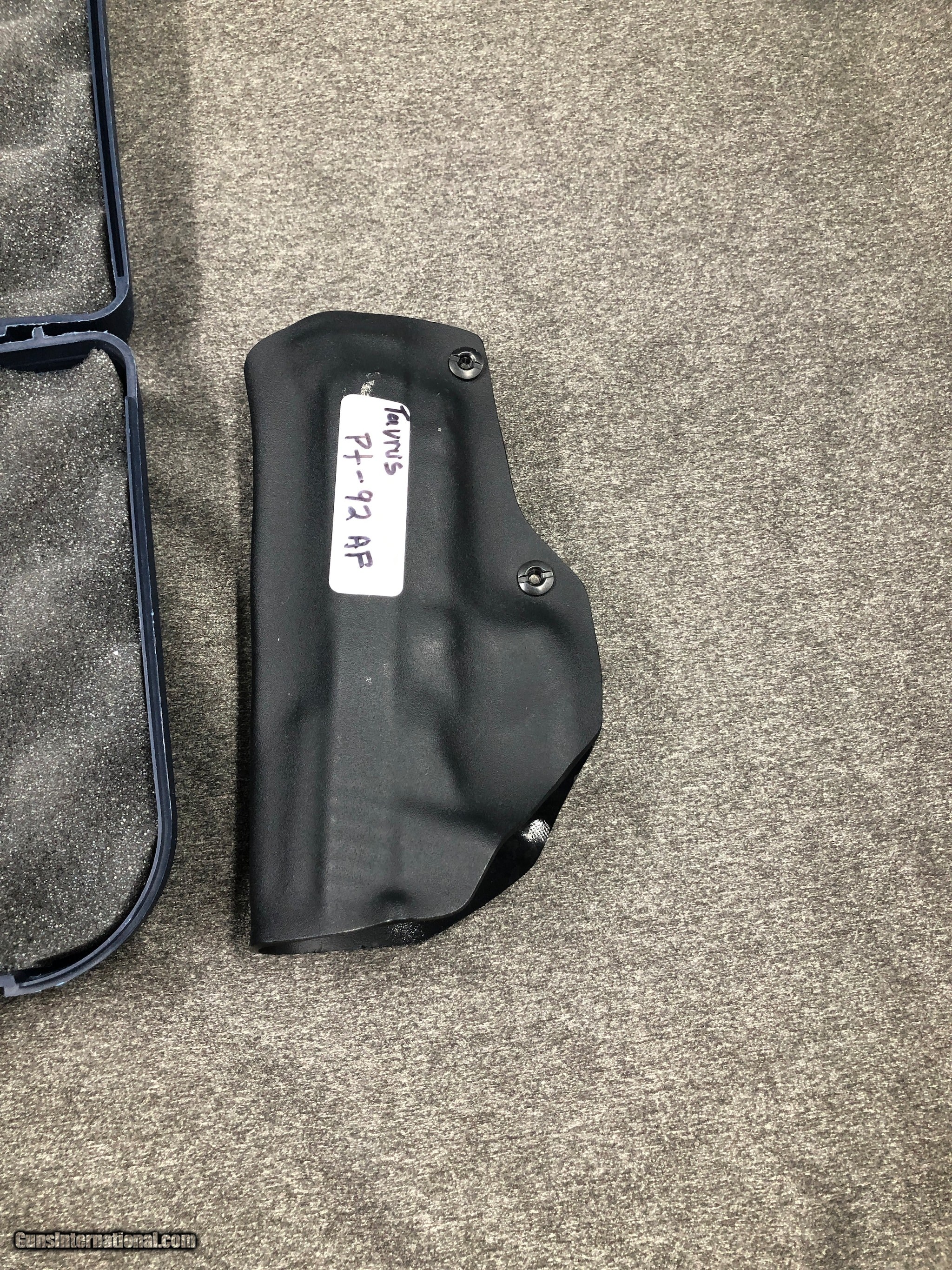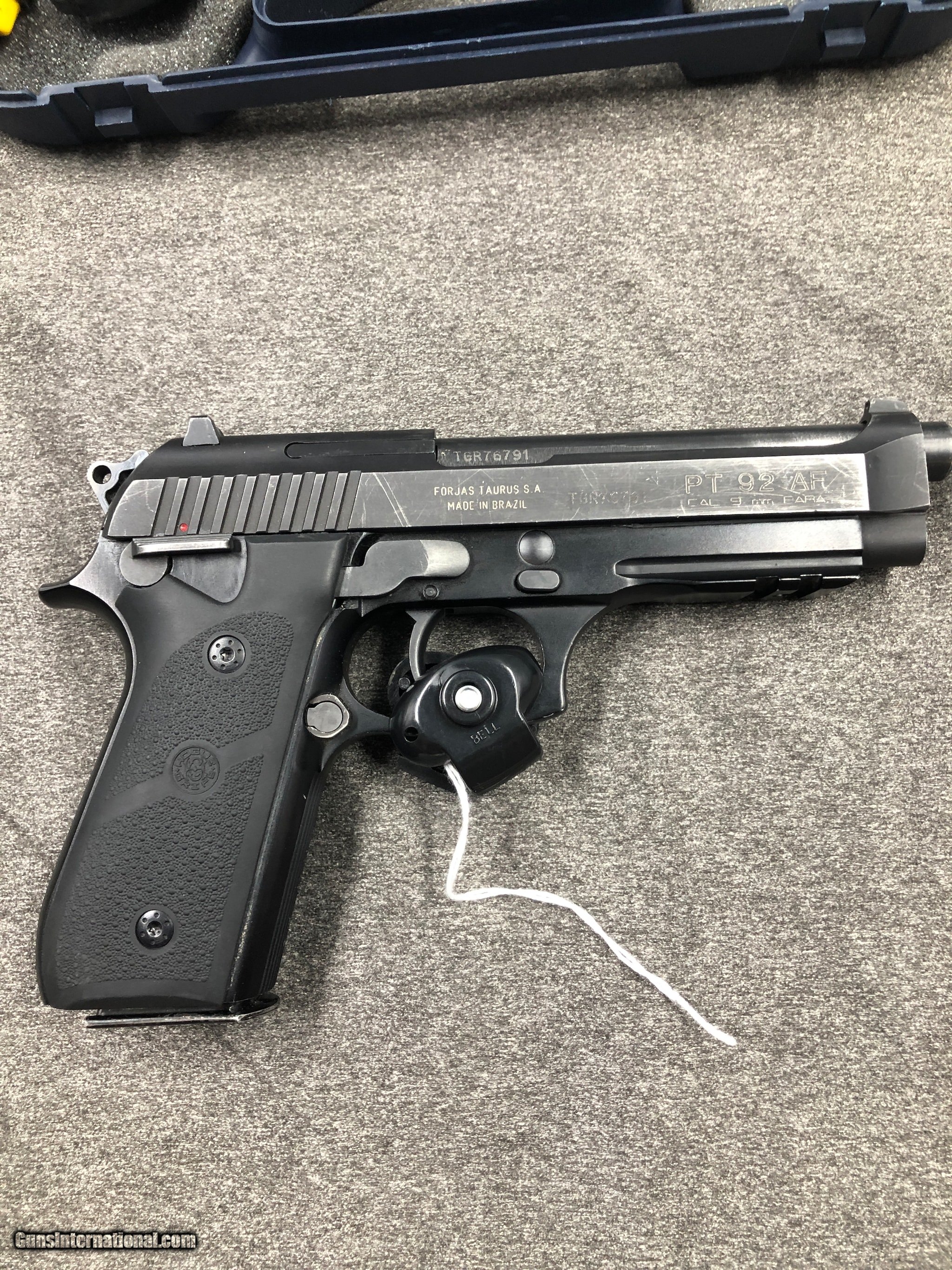 Description: Guns Listing ID: 564208 Taurus PT 92 AF 9mm pistol with 3 magazines , holster and a case . SOLD Manufacturer: TAURUS INTERNATIONAL MFG., INC. Model: PT 92 AF Caliber Info: 9MM LUGER (9X19 PARA) Condition: Used - Non-Certified Barrels: 5 BARREL Finish: BLACK |
