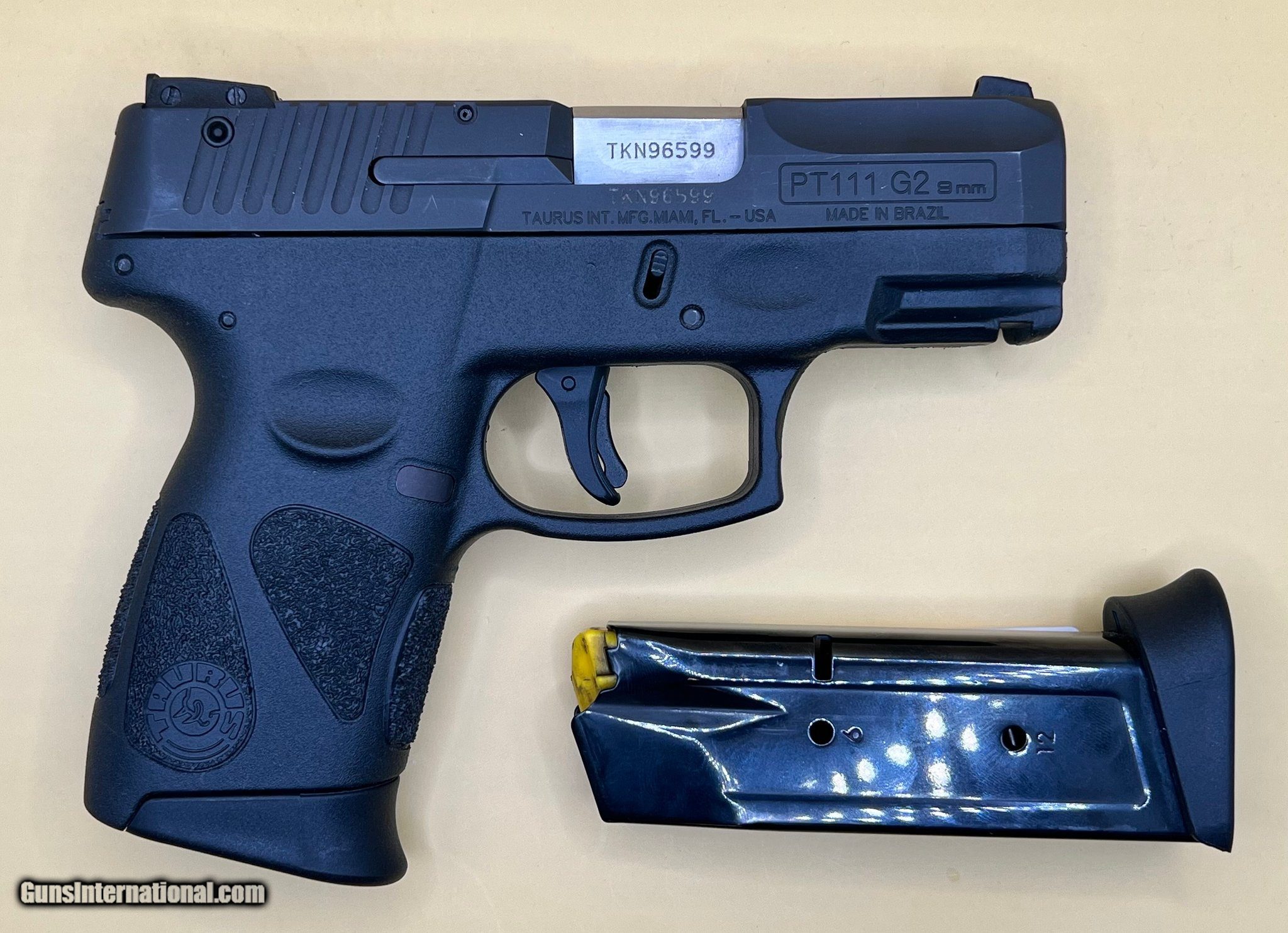 Description: Guns Listing ID: 465369 urus Millennium G2 is a striker-fired SA/DA polymer framed semi-automatic pistol. It is an update to the old Millennium Pro pistol and features new textured areas on the grip, a fully adjustable rear sight, pull-down tabs for taking the pistol apart and a new picatinny rail for laser or light combinations. The G2 is a sub-compact, striker-fired 9mm with a double-stack 12-round magazine. It has stippled texturing on the grips and replaces the slide retainer pin with Glock-style pulldown tabs to disassemble the firearm. The G2 has a smooth trigger and above-average handling. SOLD Manufacturer: TAURUS Model: MILLENIUM G2 Condition: Used - Non-Certified Barrels: 3.2 Gauge Info: 9MM LUGER (9x19 PARA) Finish: black |
