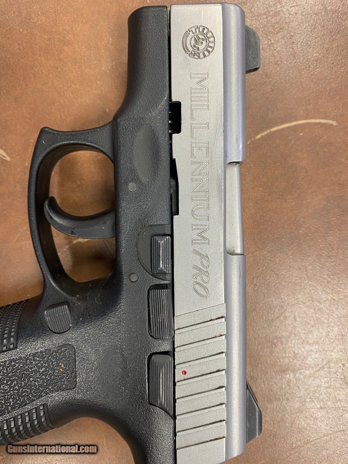 Description: Guns Listing ID: 637904 Taurus Millennium Pro chambered in .40S&W, single magazine holds 10 rounds. SOLD Manufacturer: TAURUS Model: Millenium PT-111 Pro Caliber Info: 40 S&W Condition: Used - Non-Certified Barrels: 2.5 BARREL Finish: BLACK AND STAINLESS |