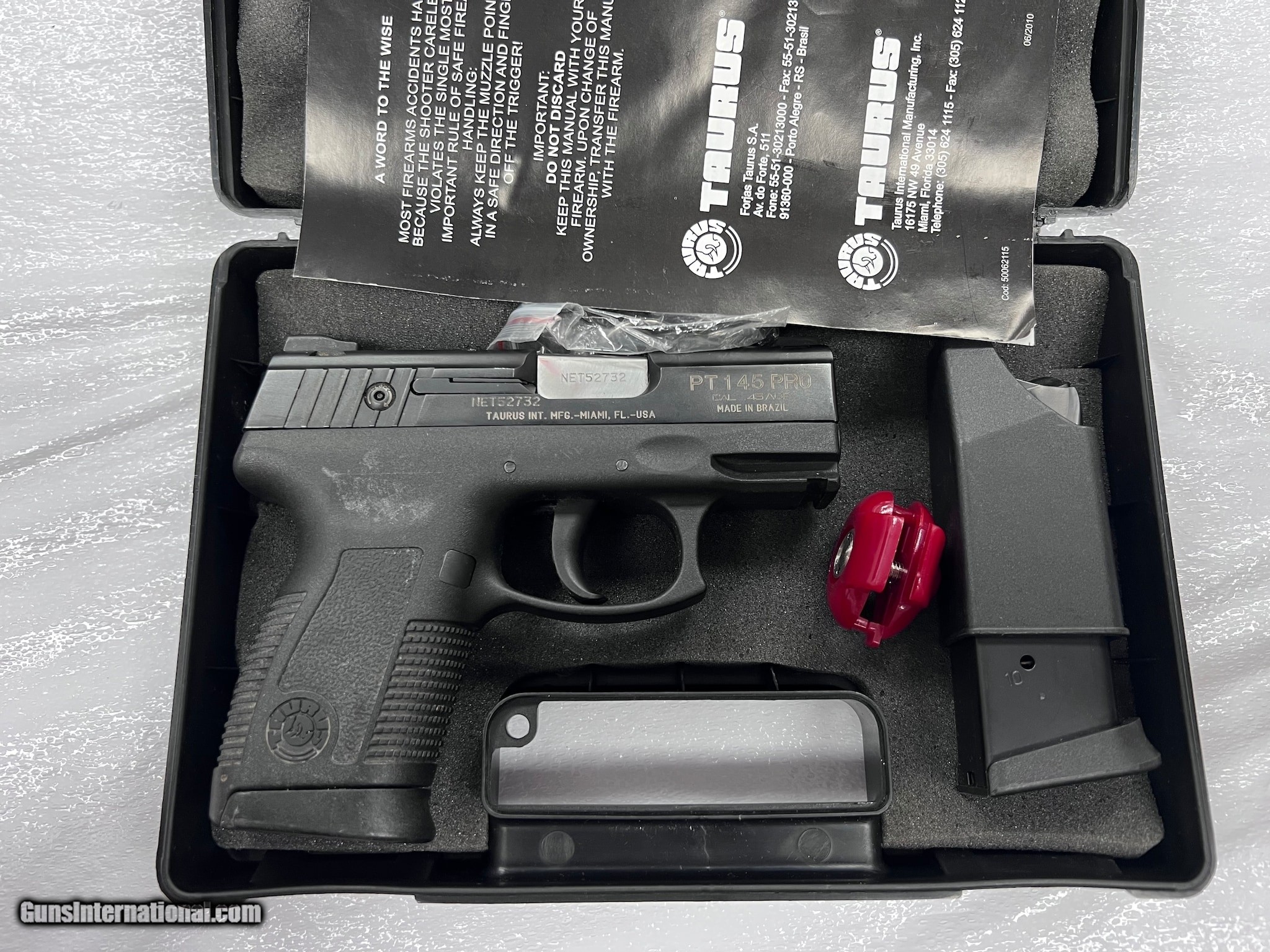 Description: Guns Listing ID: 972945 comes with box and 2 magazines, little to no wear on gun, looks to be shot a couple of times, see photos for details! SOLD Manufacturer: TAURUS Model: MILLENIUM PT145 PRO Caliber Info: .45 ACP Condition: Used - Non-Certified Barrels: 3.3 BARREL Finish: BLACK |