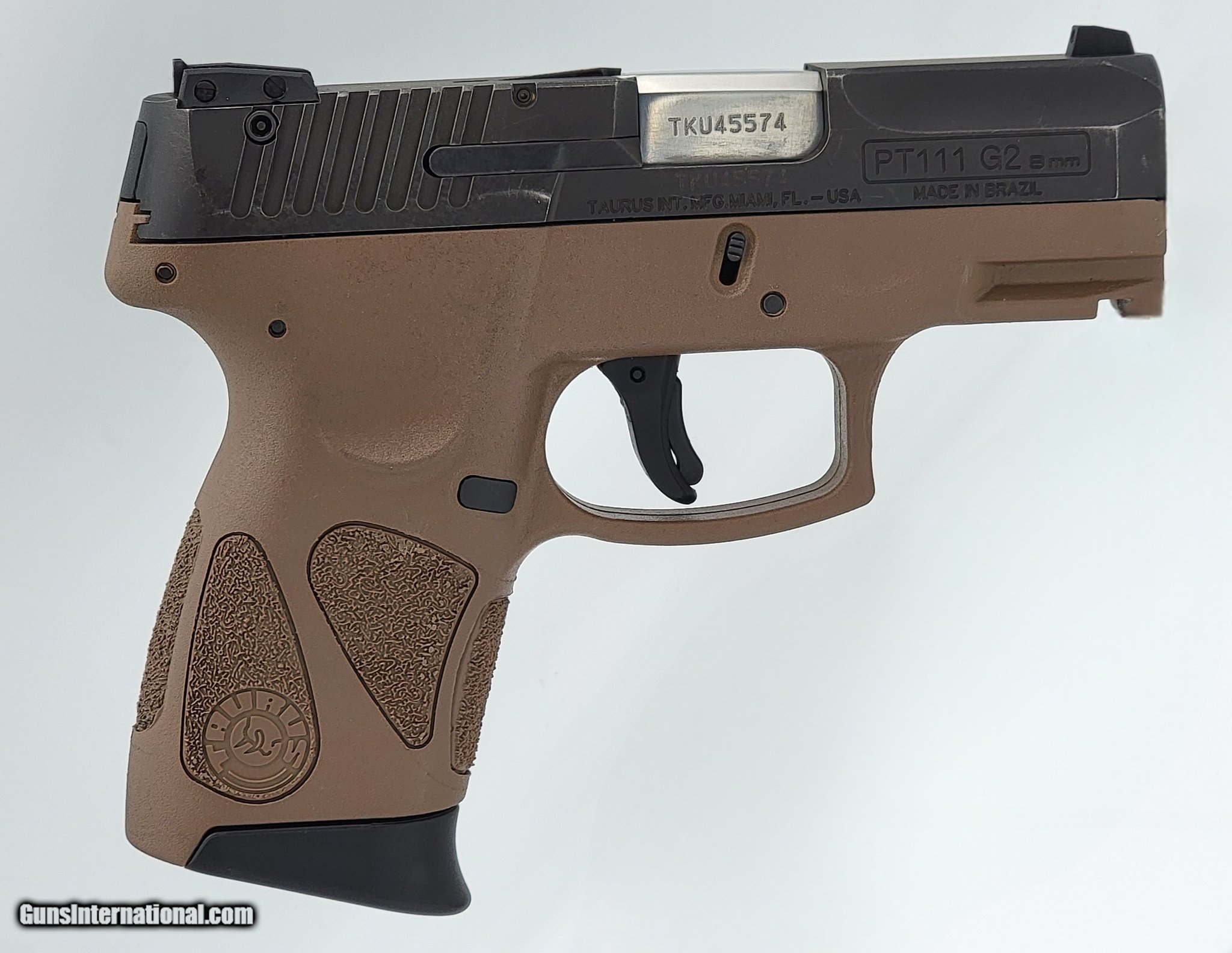 Description: Guns Listing ID: 382441 This is a PRE-OWNED TAURUS MILLPT111 G2 9MM in good condition with NORMAL cosmetic wear. Comes with one mag Taurus PT 111 Millennium G2 9mm Pistol. Lightweight brown polymer frame with a thin profile and textured grip. An excellent choice for concealed carry. #1404822 SMM-EM SOLD Manufacturer: TAURUS Model: MILLENNIUM G2 PT111 Caliber Info: 9MM LUGER (9X19 PARA) Condition: Used - Non-Certified Barrels: 3.2 BARREL Action: SEMI AUTOMATIC Finish: BROWN AND BLACK Weight: not specified |