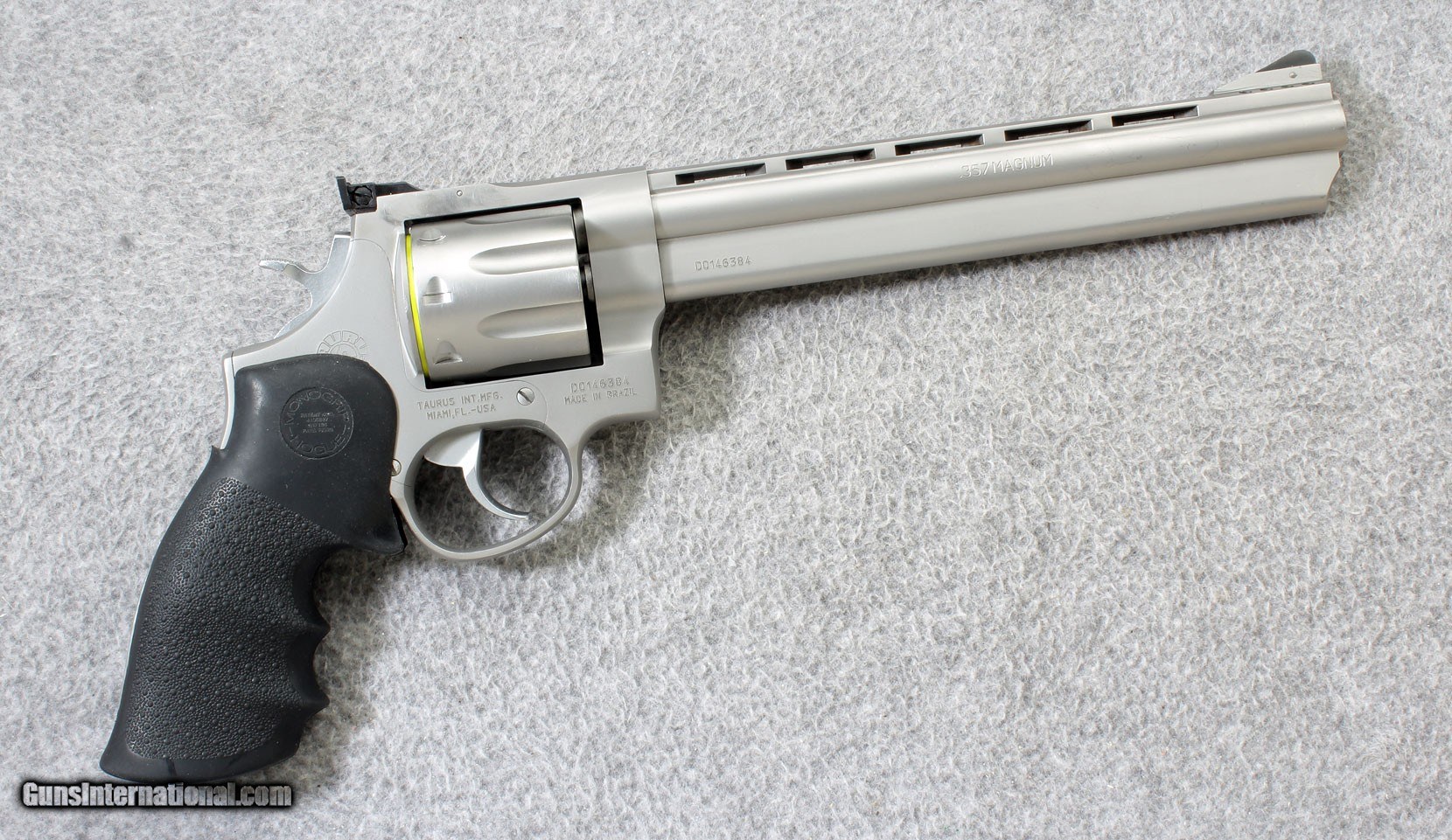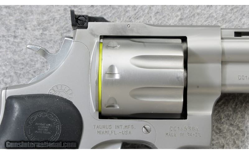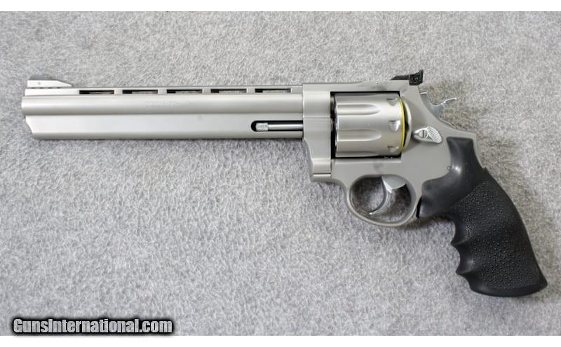 Description: Featuring a burly, ported barrel, the eight shot TaurusĀ® Model 608 Revolver is the perfect hunting weapon. The matte stainless-steel frame and barrel minimize glare and maximize style. The adjustable sights are convenient and easy to use. Black rubber grips with cushion inserts provide maximum comfort when handling this Taurus hunting pistol. .357 Magnum Metal Condition: "Good with rub marks, a turn line on the cylinder and scratches Bore Condition: Excellent Barrels: 8 3/8 inch ported full lug barrel Triggers: Double action Weight: 56 oz. Sights: Adjustable rear sight with blade front Item Location: Lehi, UT Price: $474.99 Contact Seller |