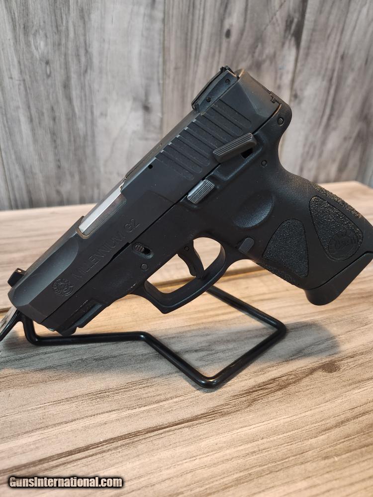 Description: Guns Listing ID: 497974 Condition: Used – In great condition with minor wear marks from normal use. Functions perfectly with no mechanical issues. Details: Model: Taurus PT-111 Millennium G2 Caliber: 9mm Action: Double-action/single-action (DA/SA) Barrel Length: 3.2 inches Capacity: 12-round magazine (1 included) Sights: Adjustable rear sight, fixed front sight Frame: Polymer frame with textured grip Finish: Black matte finish Extras: One 12-round magazine (included) soft carry case Features: Compact, lightweight design for concealed carry Ergonomic grip for comfortable handling Great for self-defense, concealed carry, or range use Proven reliability and accuracy (ks) SOLD Manufacturer: TAURUS Model: PT-111 MILLENIUM G2 Caliber Info: 9MM LUGER (9x19 PARA) Condition: Used - Non-Certified Barrels: 3 BARREL Action: SEMI AUTOMATIC Finish: black & blued |