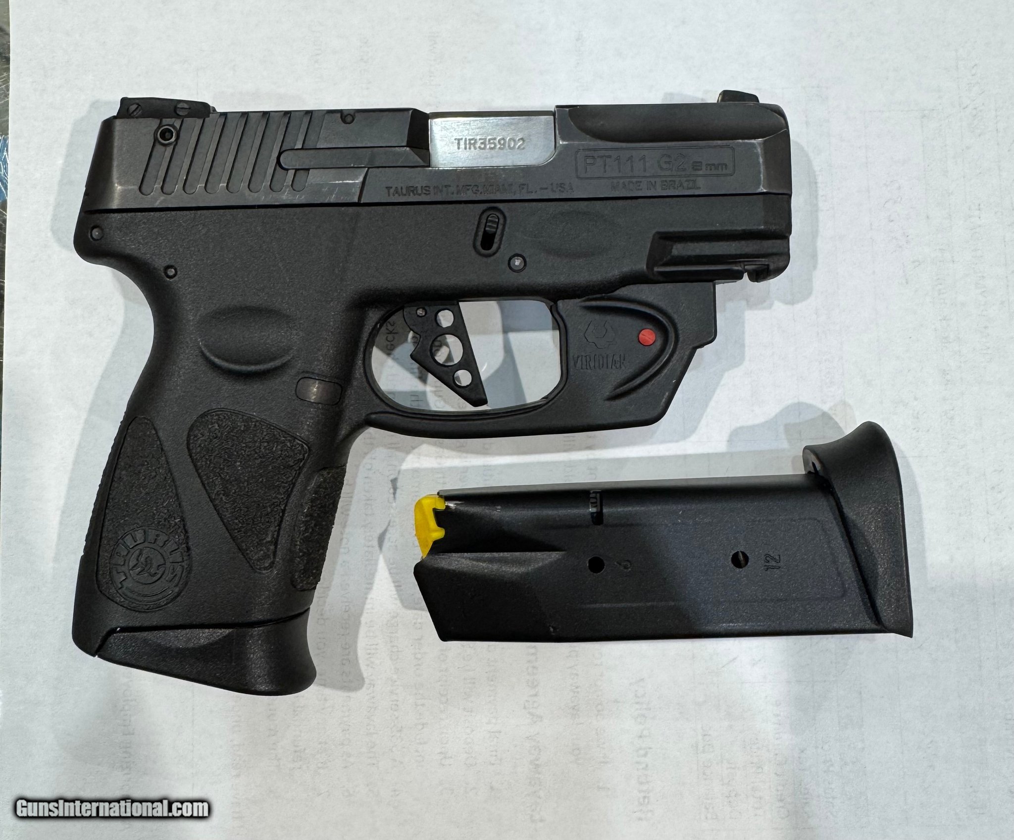 Description: Guns Listing ID: 578604 Used Taurus PT111 Millennium G2. Compact model with 2-12rd magazines. Pistol has adjustable rear sight, loaded chamber indicator, manual safety, aftermarket trigger and guide rod (brand unknown), and a Viridian Red Laser. No box included. SOLD Manufacturer: TAURUS Model: PT-111 MILLENIUM G2 Caliber Info: 9MM LUGER (9x19 PARA) Condition: Used - Non-Certified Barrels: 3.2" BARREL Action: SEMI AUTOMATIC Finish: black |
