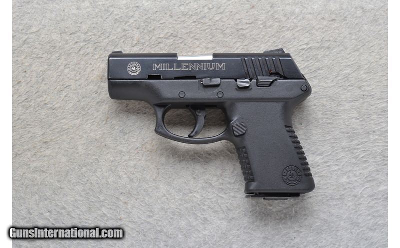 Description: This Taurus Model PT 111 Millennium is a right hand semi-auto pistol in 9mm Cal. It has a 3.25 inch barrel with a rear serrated slide. A blade front sight and a notch rear sight with 3 white sight dots. The grip is a textured black polymer. 9mm Parabellum SOLD Chambers: Semi-Auto 10 round magazine. Metal Condition: Very good. Bore Condition: Excellent. Barrels: 3.25 inches with a rear serrated slide. Weight: 20 oz. Sights: Blade front. Notch rear. 3 white sight dots. Item Location: Richfield, WI |