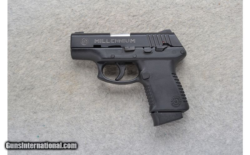 Description: This Taurus Model PT 111 Millennium is a right hand semi-auto pistol in 9mm Cal. It has a 3.25 inch barrel with a rear serrated slide. A blade front sight and notch rear sight. 3 white sight dots. The grip is a textured black polymer with deep checkered front and back straps. 9mm Parabellum SOLD Chambers: 10 round magazine. Metal Condition: Excellent. Bore Condition: Excellent. Barrels: 3.25 inch barrel with a rear serrated slide. Weight: 20 oz. Sights: Blade front. Notch rear. 3 white sight dots. Item Location: Richfield, WI |