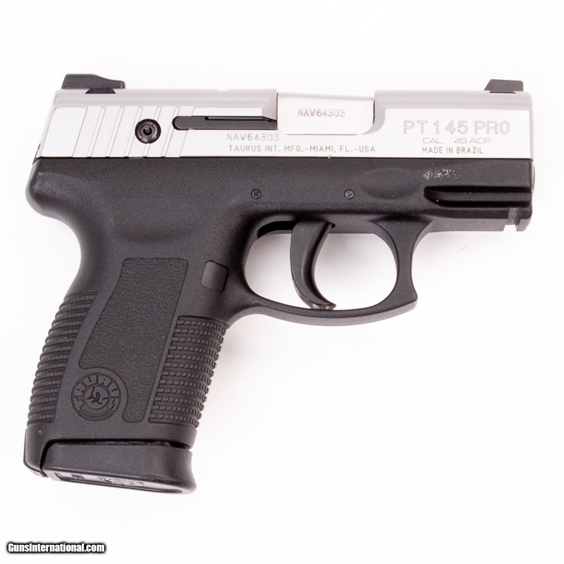 Description: Guns Listing ID: 1388187 2-10 round magazines are included wit this purchase. The PT 145 features an external safety. Get the best bang for your buck when you get a Certified Used Firearm . When you see the Certified Used stamp on any of our firearms, you can be confident that you’re getting exactly what you want – a gun only in very good to excellent condition and held to the highest quality standard. All Certified Used Guns come with a ‘no questions asked’ return policy . PLUS, ALL CERTIFIED USED GUNS SHIP FREE! SOLD Manufacturer: TAURUS Model: PT 145 Caliber Info: .45 ACP Condition: Used - Non-Certified Barrels: 3 BARREL Finish: TWO-TONE |