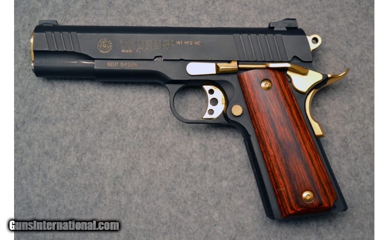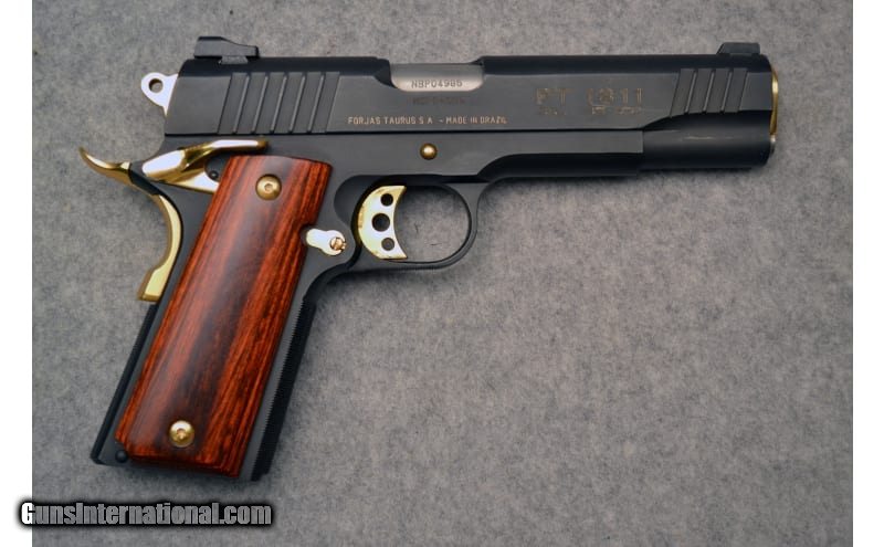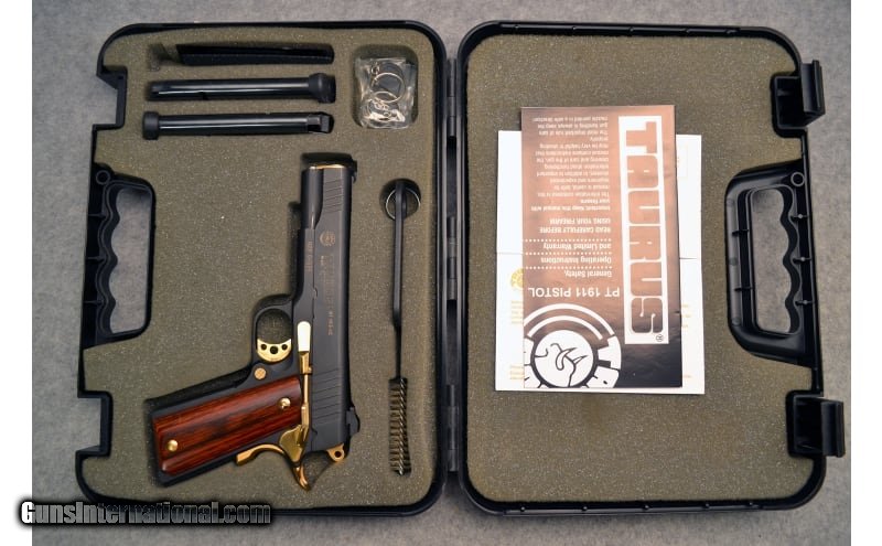 Description: Taurus PT 1911 Semi-Auto pistol in .45 ACP. It has a 5" barrel. Includes a hard case, two magazines, and extra grips. .45 ACP SOLD Barrels: 5 Weight: 2 lb Item Location: christiana |