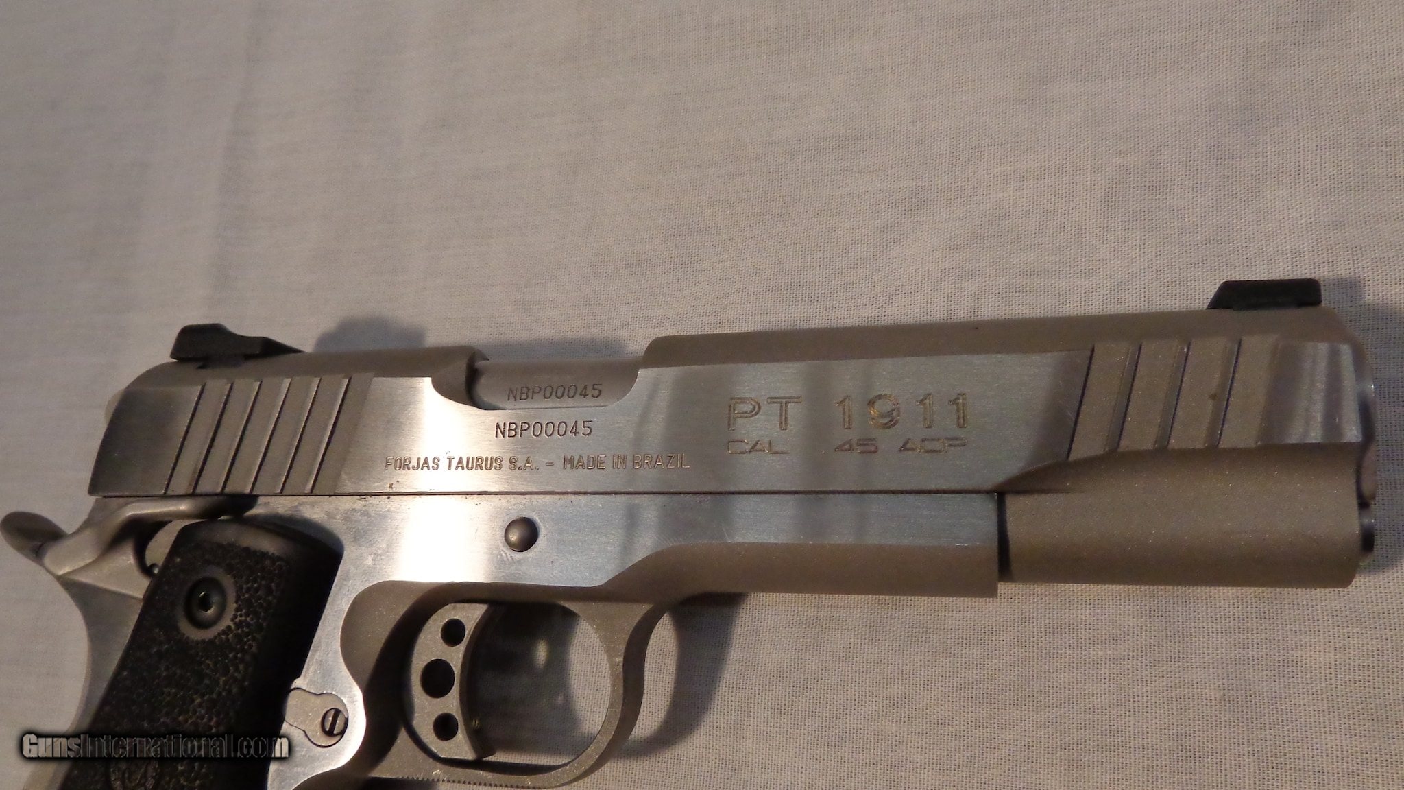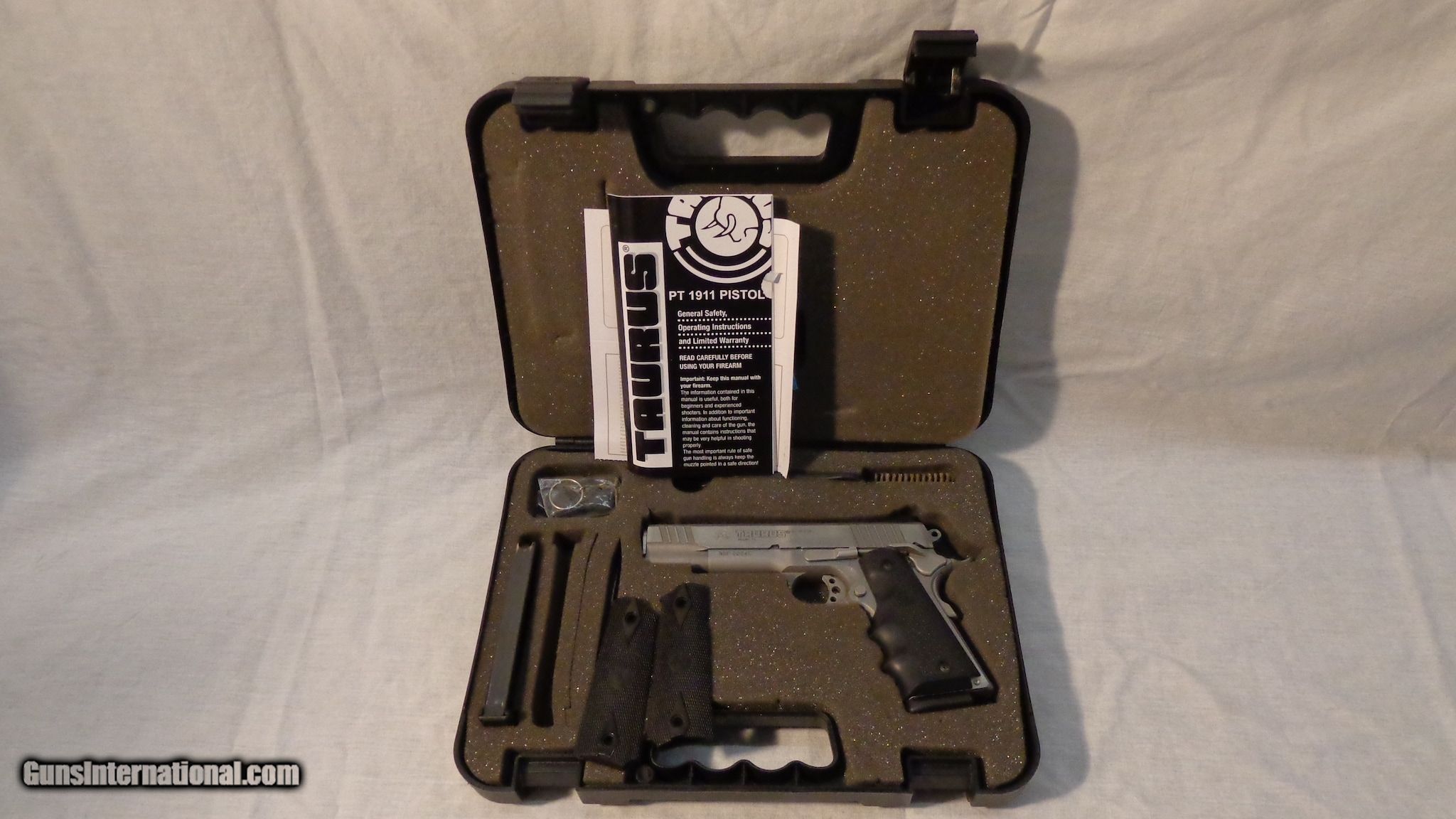 Description: Guns Listing ID: 531092 This Taurus is in good condition overall showing scratches. The factory hard case, two magazines, manual, and original grips are included. SOLD Manufacturer: TAURUS Model: PT 1911 Caliber Info: 45 ACP Condition: Used - Non-Certified Barrels: 5 BARREL Finish: STAINLESS |